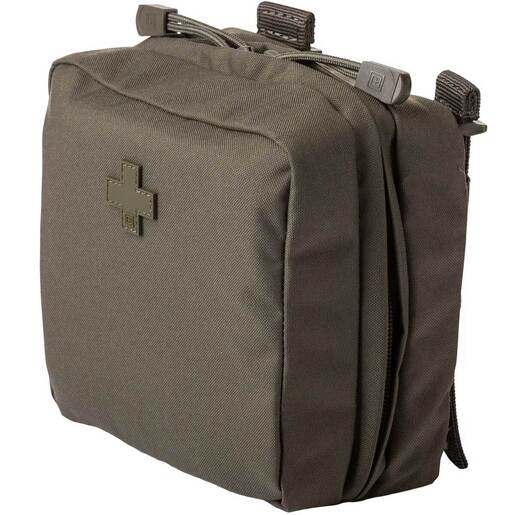 5.11 6 x 6 Med Pouch - Ranger Green - The 6.6 Medic Pouch meshes seamlessly with 5.11 bags, packs, and duffels, providing a quick and efficient first aid solution for any application or environment. The 6.6 Med Pouch is designed to secure first aid supplies to your pack or vest using a molle attachment system. The pouch has a first aid cross on the front for immediate recognition.With two zippered internal mesh pockets to help you organize your first aid equipment and allow you to see where critical items are located. 5.11 SlickStick /MOLLE Medic Pouch Internal mesh pockets sized for EMT gear N500D Molded zipper grip YKK zipper hardware Prominent first aid cross at front Universal web platform compatibility Integrates with 5.11 Bags, packs, and duffels Imported