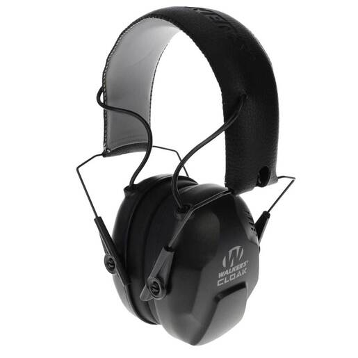 Walker's Cloak Electronic Ear Muff - Thanks to Sound Activated Compression (SAC) and a noise reduction rating (NRR) of 23-25 dB, the Cloak Single Mic Electronic Muffs ensure your hearing is always protected. The addition of built-in, high-definition speakers and a Hi-Gain omnidirectional microphone delivers clear, balanced sounds at safe levels. Simply slide the padded headband into place and go about your business. Easy to fold up and store away in any range bag. Silent, simple-to-operate soft-touch button controls ensure zero distractions. Powered by two AAA batteries (included).
