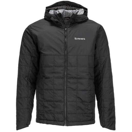Simms Men's Fall Run Insulated Fishing Hoodie - The perfect 3-season jacket, both on and off the water, the lightweight Fall Run packs a heavyweight warmth-to-mass ratio for less bulk under bibs and waders. Worn alone or paired with a waterproof, breathable shell, the Primaloft insulation is treated for water repellency to keep you warm even when damp from rain or heavy activity. Extremely compressible, it's the ideal layer for stowing in your daypack or sling pack. Primaloft Black Eco insulation 60g (body) uses 60% recycled materials, treated for water repellency 100% recycled shell with DWR finish for water resistance Internal quilting on upper front and back body provides a smooth exterior for abrasion resistance when worn with waders or bibs Zippered handwarmer pockets and internal chest zippered pocket on wearer's left Style: 14390