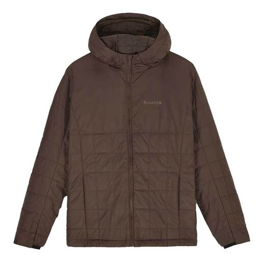 Simms Men's Fall Run Insulated Fishing Jacket - The perfect 3-season jacket, both on and off the water, the lightweight Fall Run Hoody packs a heavyweight warmth-to-mass ratio for less bulk under bibs and waders. Worn alone or paired with a waterproof, breathable shell, the Primaloft insulation is treated for water repellency to keep you warm even when damp from rain or heavy activity. Extremely compressible, it's the ideal layer for stowing in your daypack or sling pack. Primaloft Black Eco insulation 60g (body) uses 60% recycled materials, treated for water repellency. 100% recycled shell with DWR finish for water resistance. Internal quilting on upper front and back body provides a smooth exterior for abrasion resistance when worn with waders or bibs. Zippered handwarmer pockets and internal chest zippered pocket on wearer's left. SHELL: 100% RECYCLED POLYESTER FILL: 100% POLYESTER Style: 14390-216