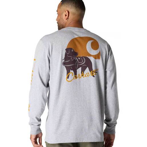 Carhartt Men's Loose Fit Heavyweight Pocket Dog Graphic Long Sleeve Work Shirt - Camp,shop or farm work, this men's long sleeve graphic tee is a go-to for the daily routine. Its heavyweight cotton jersy stands up to the test of time, and a loose fit offers extra room to move, bend, and twist. 90% cotton /10% polyester Loose fit Rib-knit crewneck and cuffs hold their shape throughout the day Side-seam construction minimizes twisting Left-chest pocket with sewn-on Carhartt label Carhartt graphic on left sleeve Carhartt "Dog" graphic on back Tagless neck label for a smooth feel Style: 107042