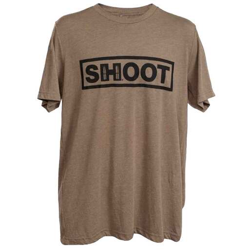 Hornady Men's Shoo Short-Sleeve Casual Shirt - Made for the hunter who wants to look his best when he is not in a blind or tree stand. Large "Shoot" graphic on the front Crew cut Tri-blend fabric Style: 99606