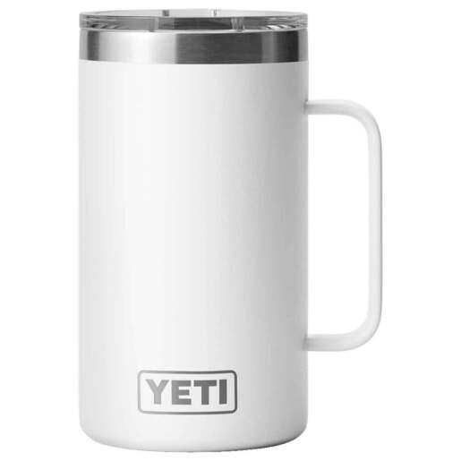 YETI Rambler 24oz Mug with MagSlider Lid - It’s tall, insulated, and with its sizable handle, it’s the beer lover’s new drinking buddy. Unlike beer glasses, this mighty mug is safe for camp. Plus, this stainless-steel beer mug is topped with our fan favorite MagSlider Lid, and the entire mug is dishwasher safe, making clean-up jobs extra easy at base camp. Bottoms up, y'all. Features Splash resistant 360 degree welded easy grip handle Dishwasher safe Please note: Do not place mug over external heat source or open flame. Vacuum seal or other damage may occur. This magnet slider is not leakproof and will not prevent spills.