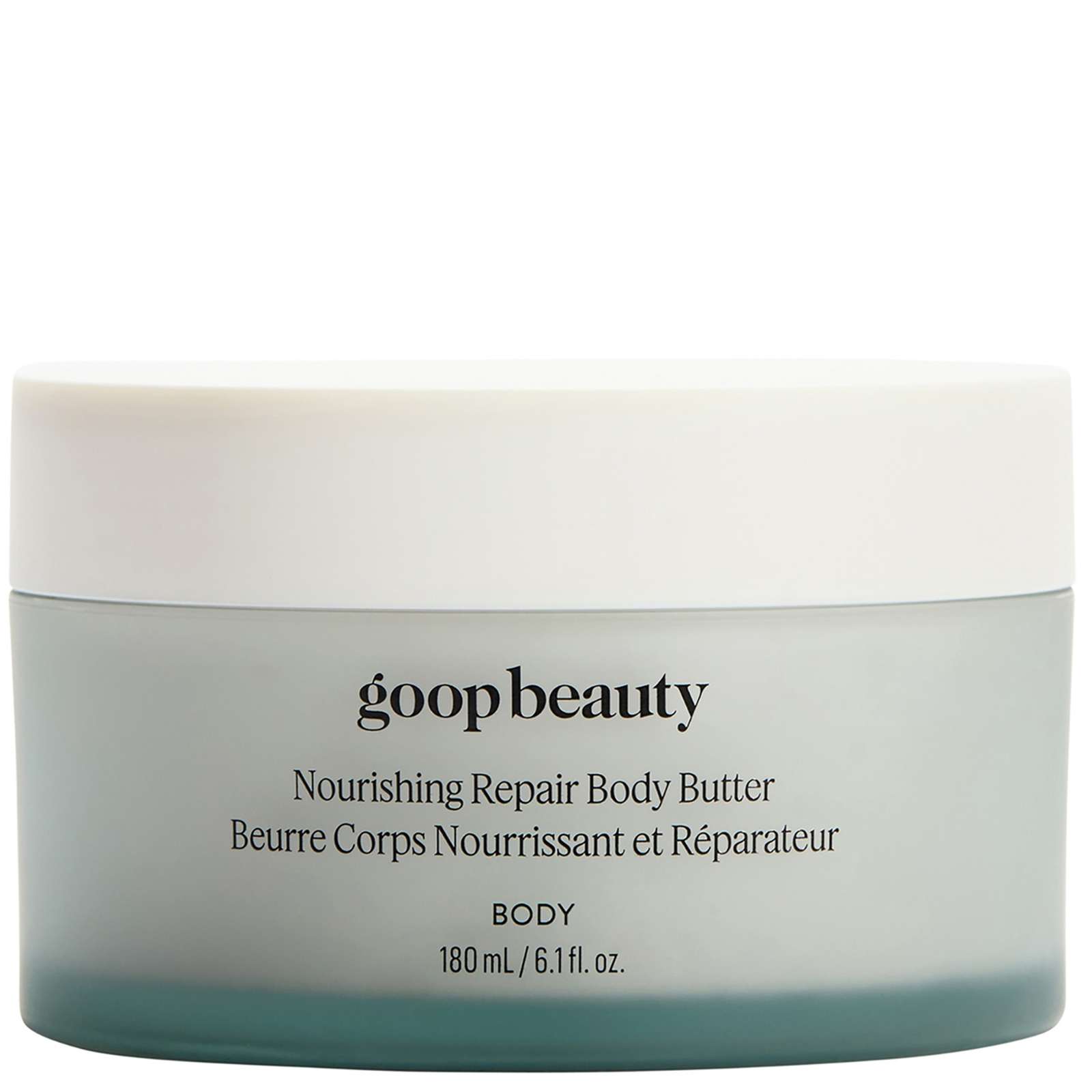 The cream melts in to repair dry skin, leaving it more moisturized for 72 hours, so it looks and feels silky-soft, smooth, firm, and toned. Made with three ultranourishing butters (bacuri, cupuaƧu, and shea) and enriched with clinically tested nutrient-rich botanical extracts (caviar lime, jojoba, and mulberry leaf), this is a one-step miracle body lotion for beautiful, healthy-looking skin from head to toe-and the subtle, citrusy scent is just so good. | goop beauty Nourishing Repair Body Butter, 180 ml | Dermstore
