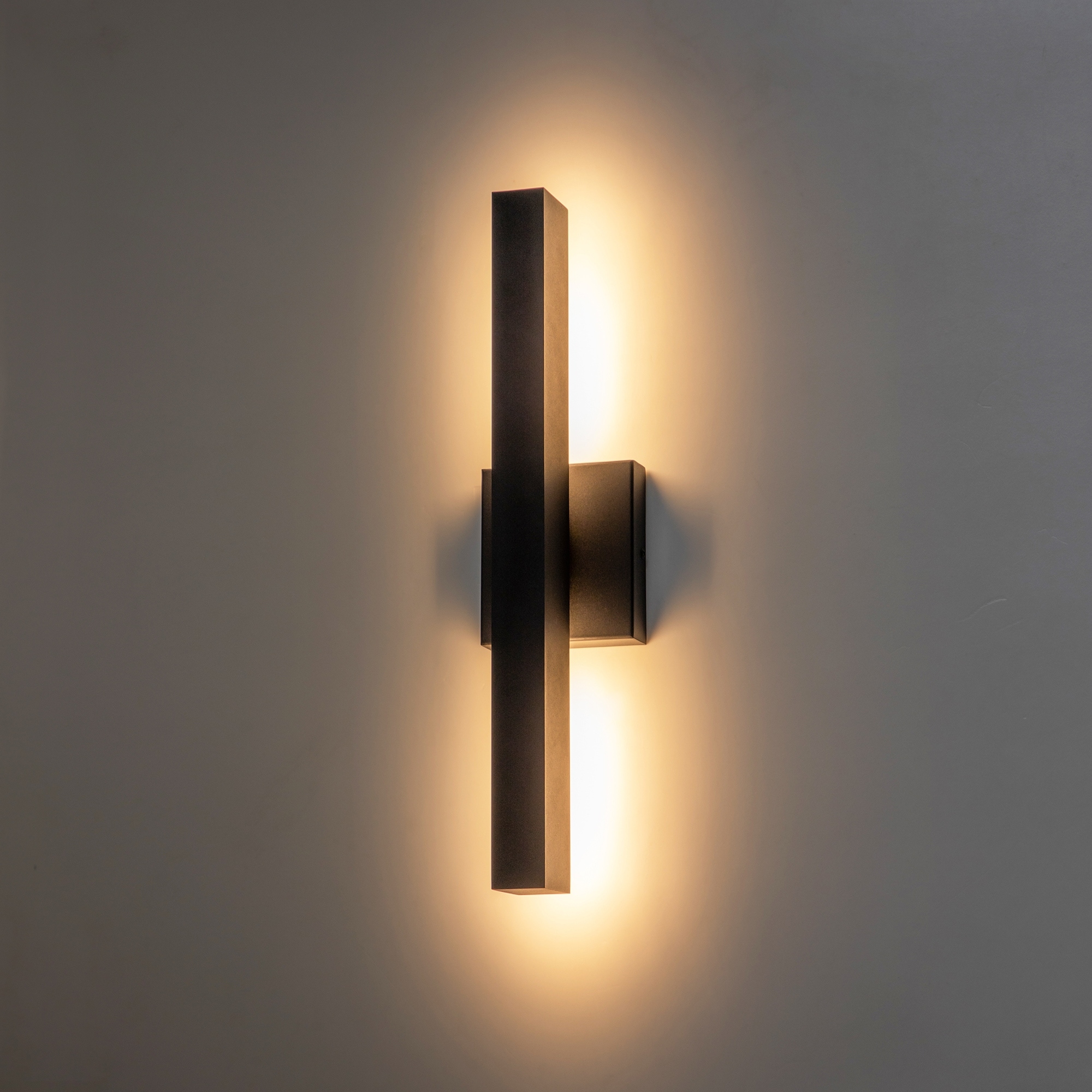 The seamless, unified design on this modern black integrated LED outdoor wall sconce takes minimalism to the next level. It's crafted from rust-resistant aluminum, low consumption, environmentally friendly, and has a simple rectangular backplate.