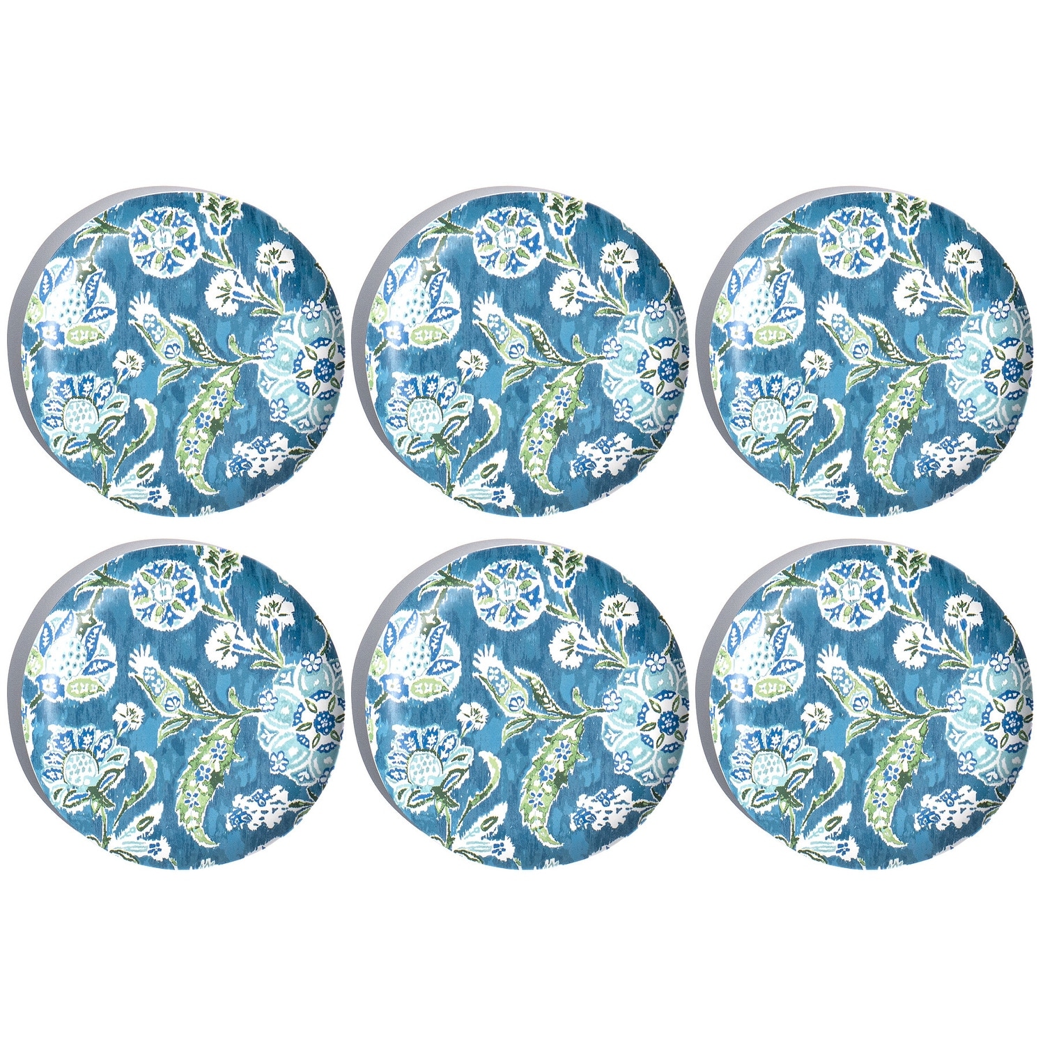 Ikat textiles was the inspiration for HANA IKAT dinnerware. In an array of blues and teals, our traditional floral is painted as a textural ikat.HANA IKAT also layers beautifully with any of our solid white melamine.