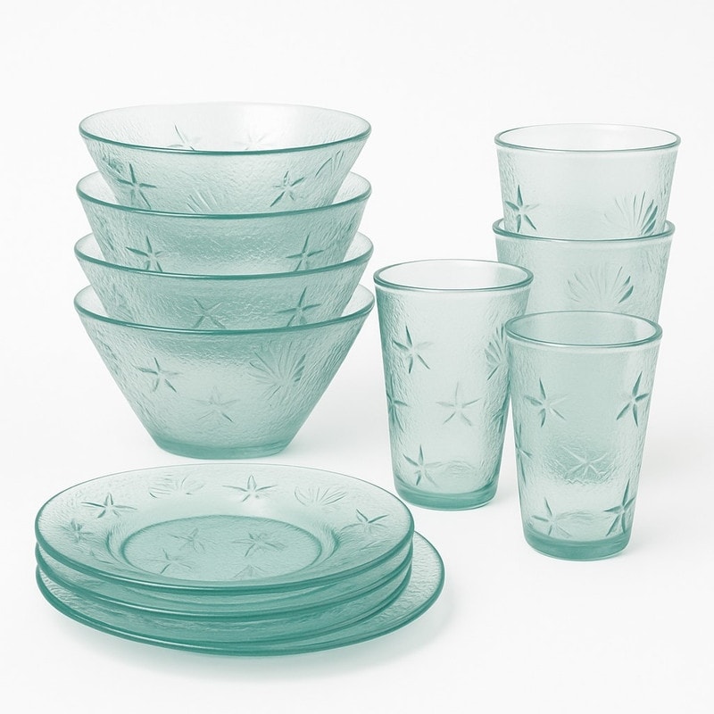 French Home Recycled Glass 12-Piece Coastal Soup and Salad Set($38.99Value)