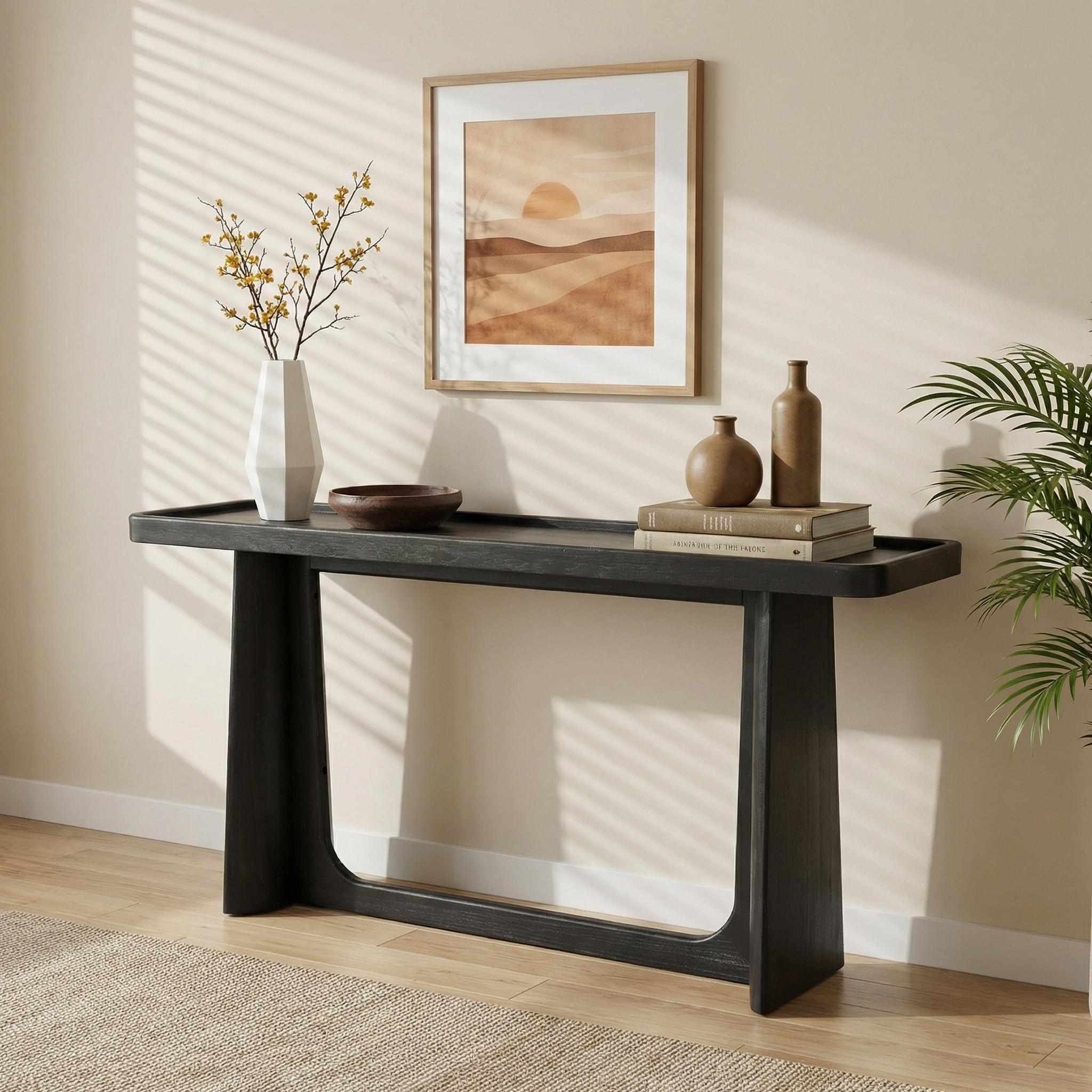 Product Features PREMIUM MATERIALS: Crafted with a smooth rubberwood veneer top and solid rubberwood legs, this console table offers exceptional strength, durability, and natural beauty.