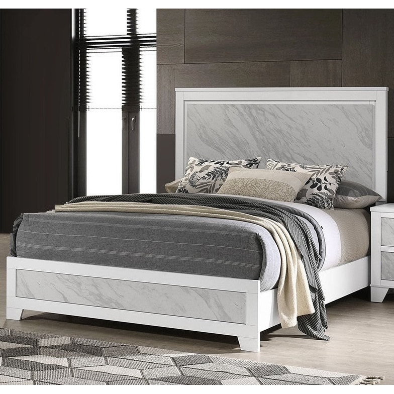 Features:- • Contemporary • White finish • Black Bar Pulls • English Dovetails • Metal Center Glide • Faux Marble Inset on Drawers • Foundation/box spring required for bed Product Description:- Refresh your space with this contemporary 4-piece bedroom…