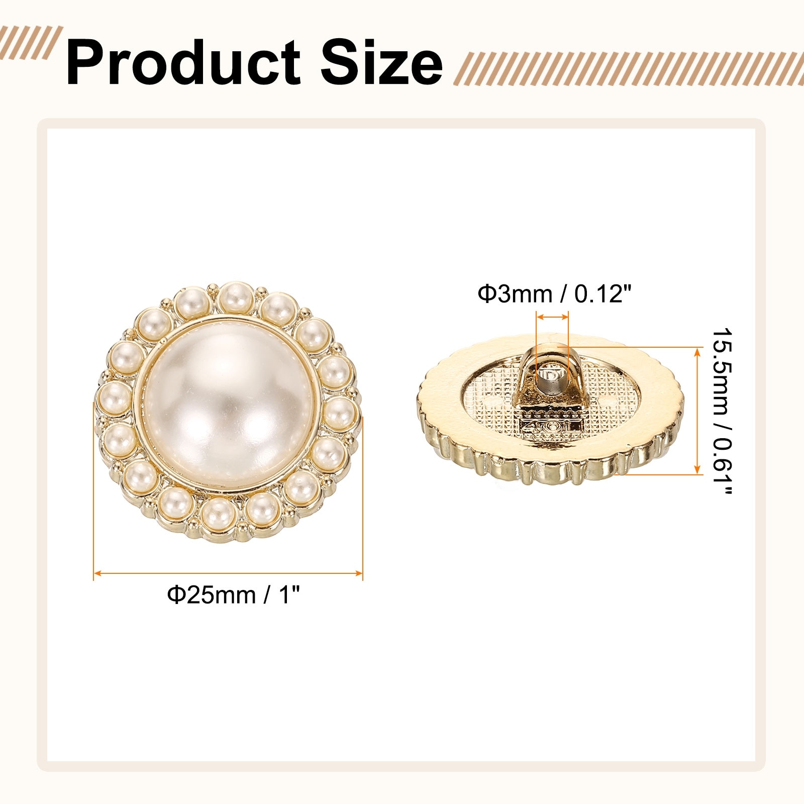 Faux Pearl Buttons Plastic Round Sewing Button Replacement Craft Fastener for Coats DIY Decoration Crafts - Gold-White