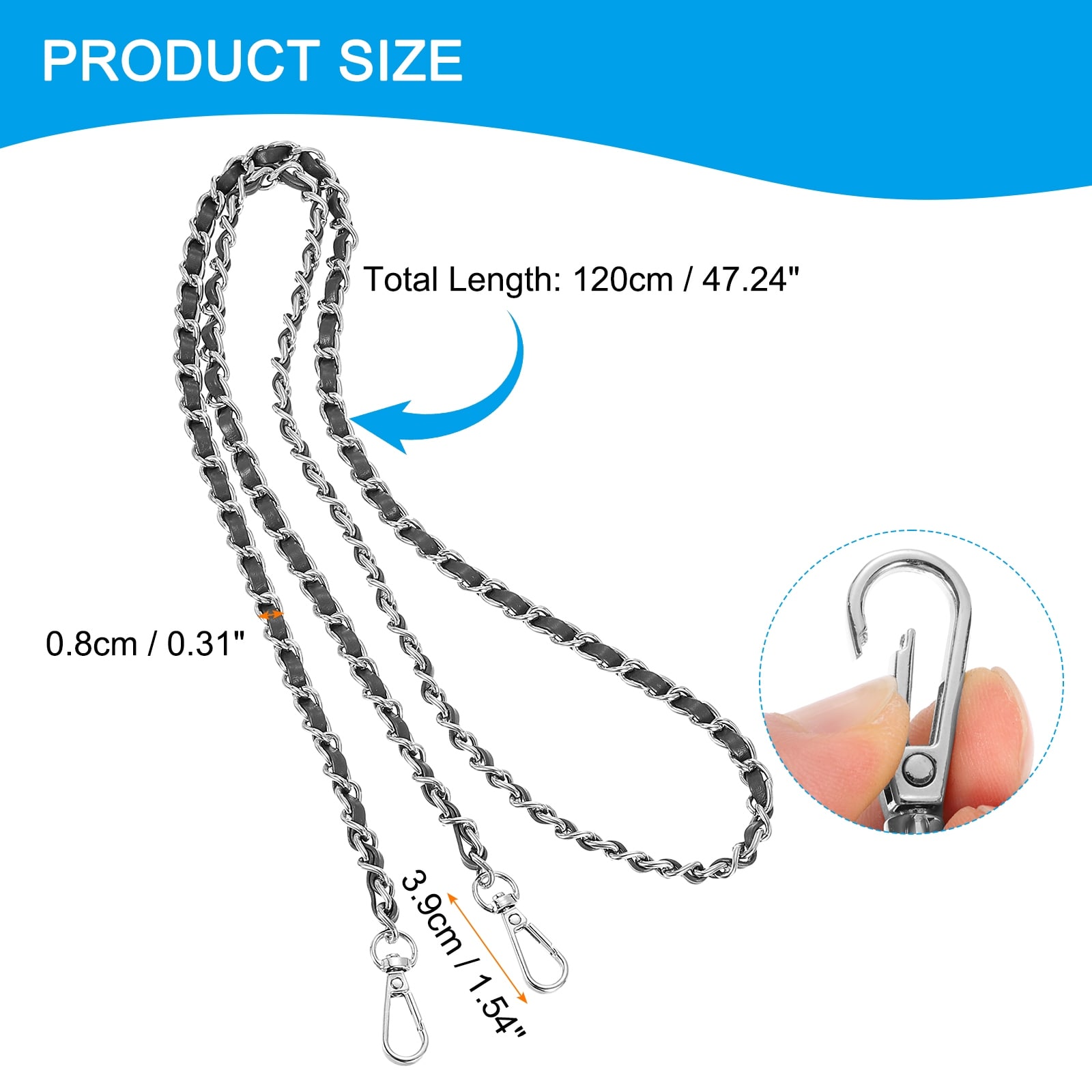 Purse Chain Strap, DIY Bag Chain Strap Replacement Crossbody Bag Straps Clutch Chain Strap