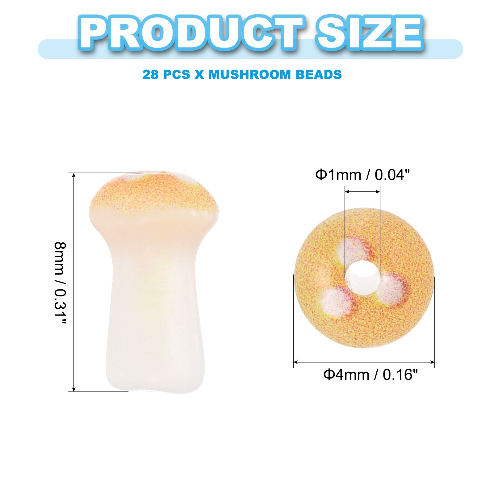 " Cute Mushroom Beads, Small Glass Beads Bulk, - Orange