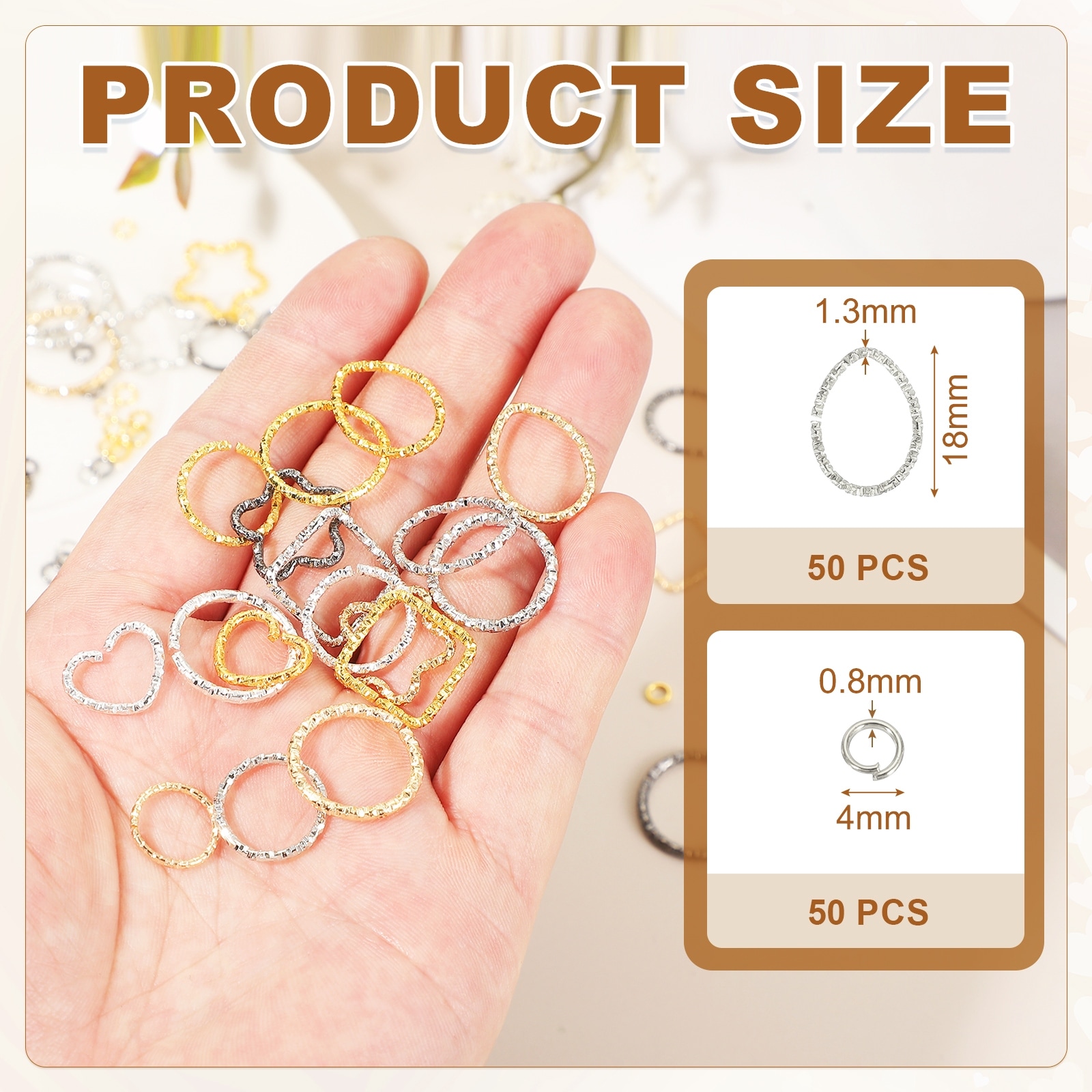 Open Jump Rings Embossed Jump Ring Kit, Closed Drop Ring Connector for Bracelet