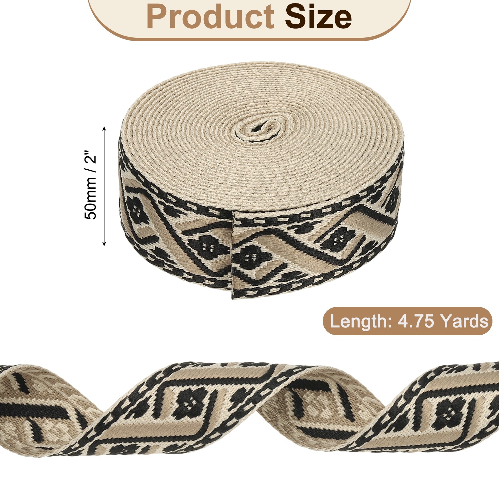 Cotton Webbing Strap Jacquard Webbing Ribbon Embroidery Polyester Webbing Straps Purse Strap Belt for Purse - 4.75Yards x 50mm