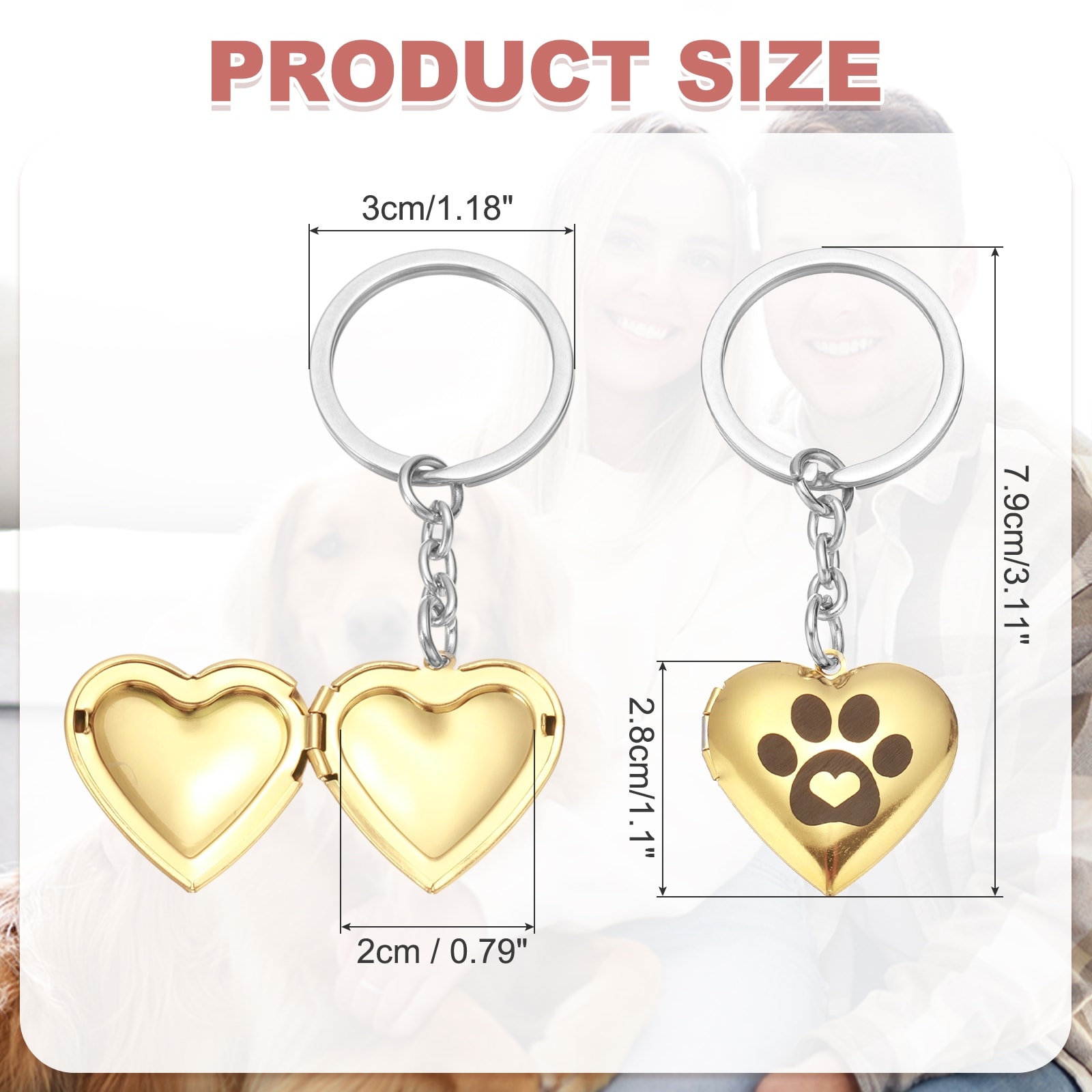 Heart Shape Dog Paw Locket Keychain for Women, Gold Photo Keychain