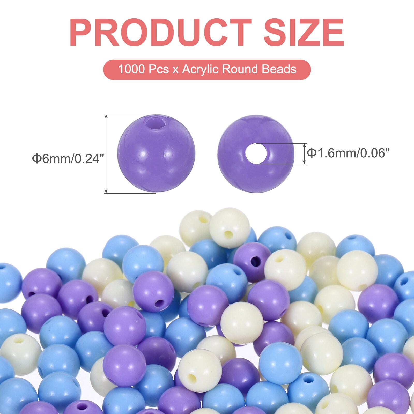 6mm Acrylic Round Beads, 1000Pcs Bubble Loose Beads, White Blue Light Blue
