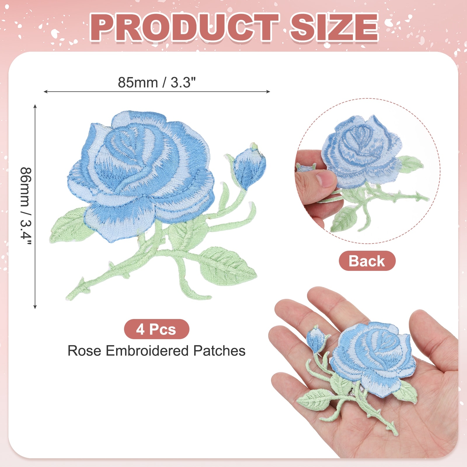Rose Iron on Patches, Rose Embroidered Patch Applique Flower Sew on Patch Repair Decoration for Clothing
