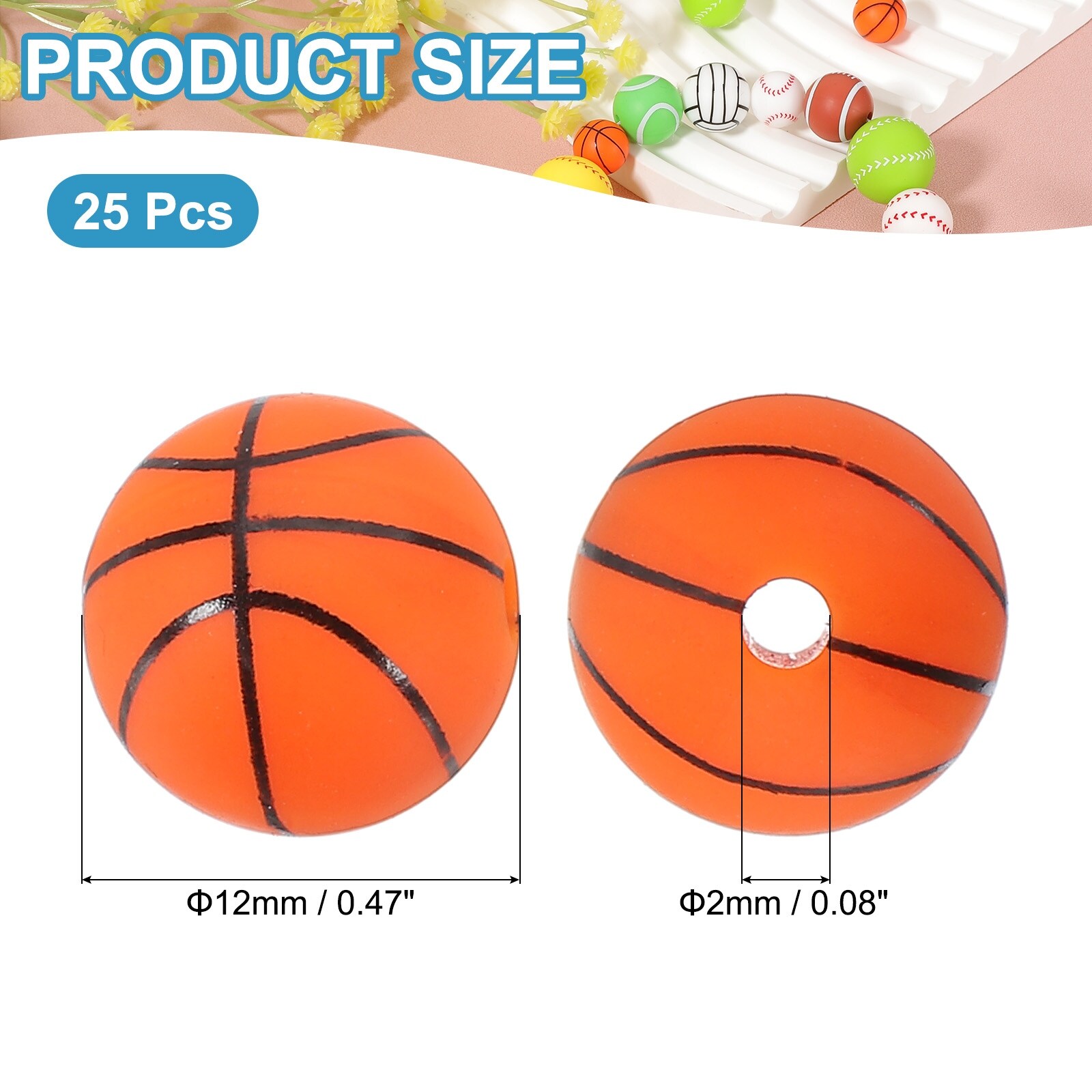 Basketball Beads, Silicone Beads Sports Beads Bulk Ball Silicone Focal Beads for Pens Bracelets Making Keychain - Orange