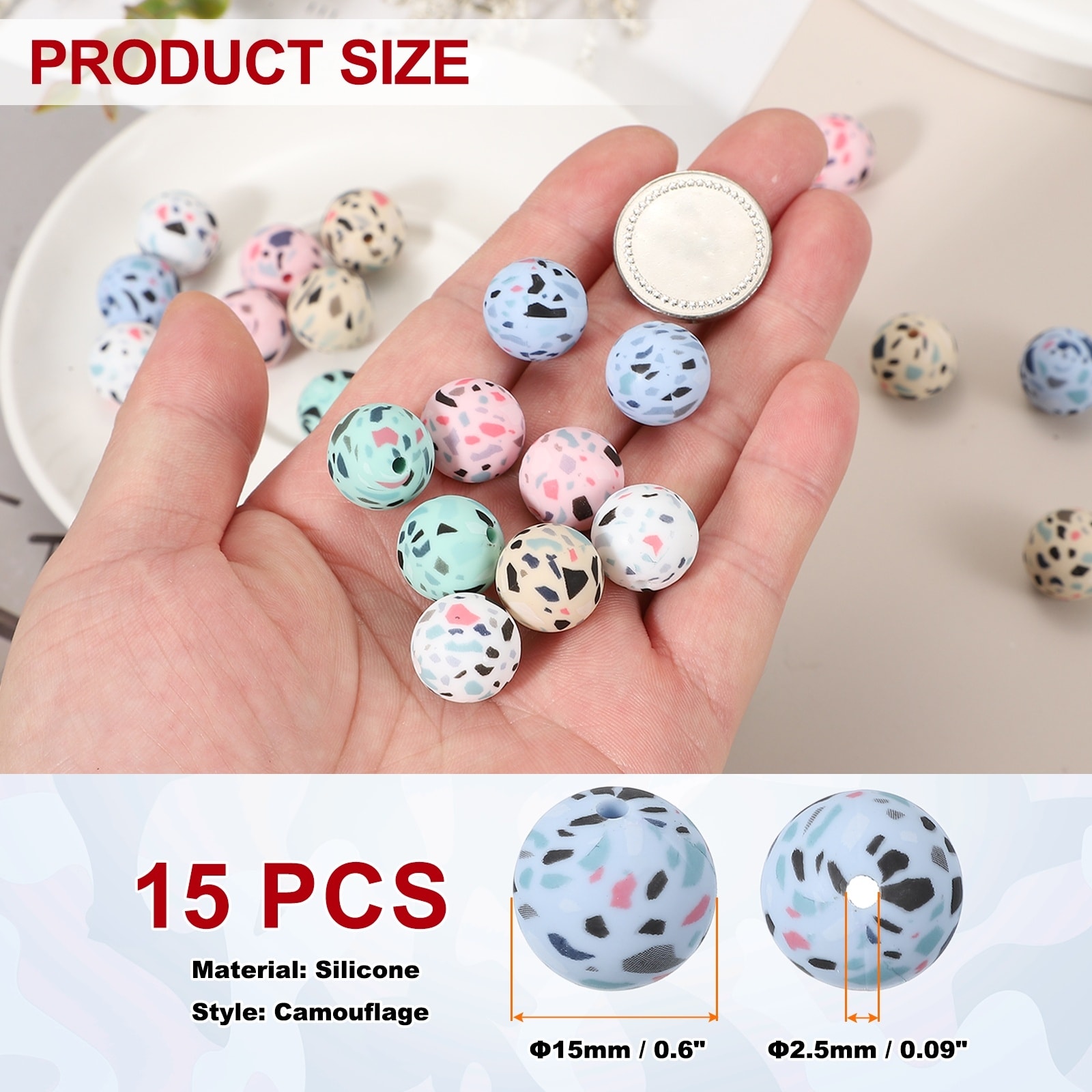 Silicone Beads, Round Camouflage Beads for Beaded Keychain Making DIY Crafts Bracelets Jewelry Making Supplies