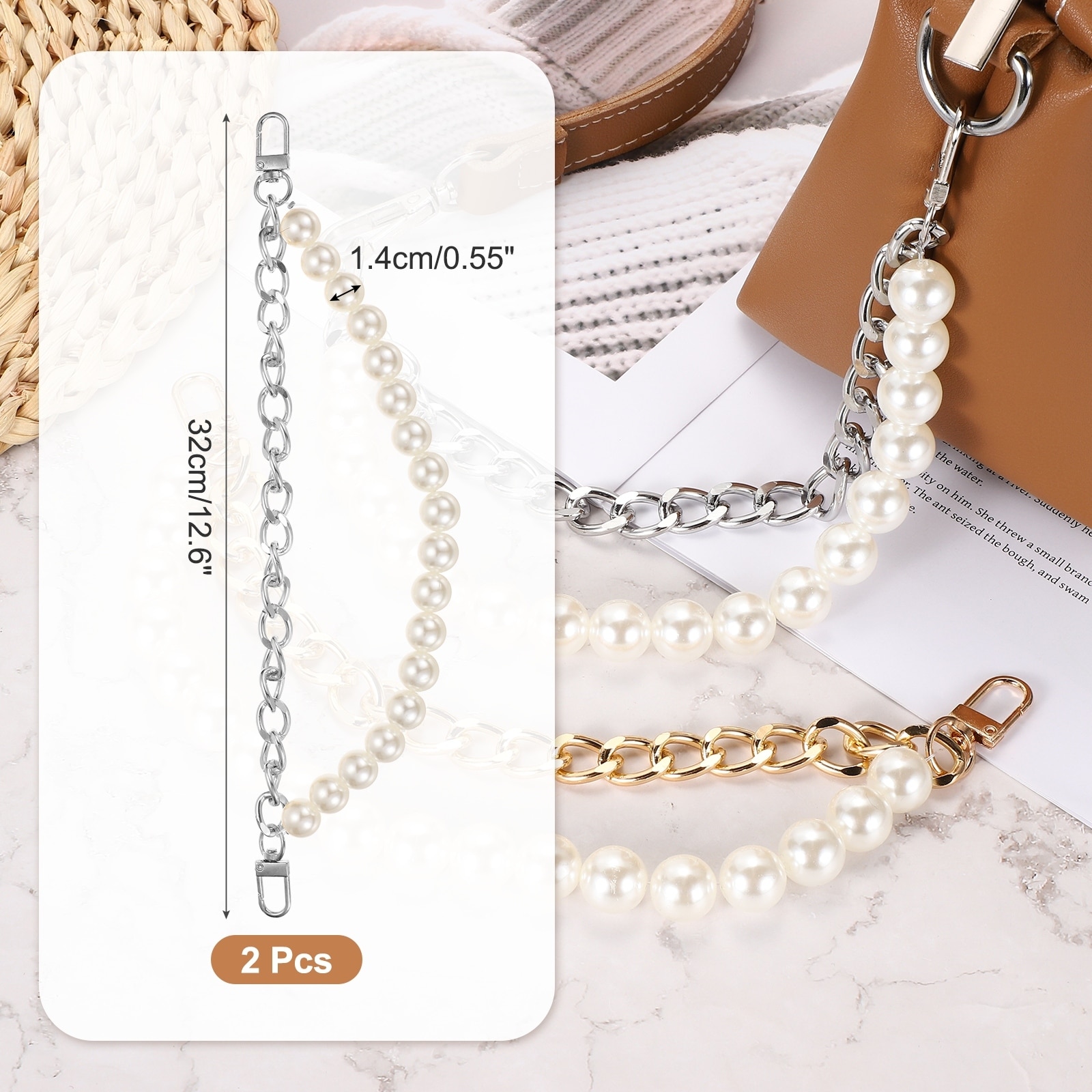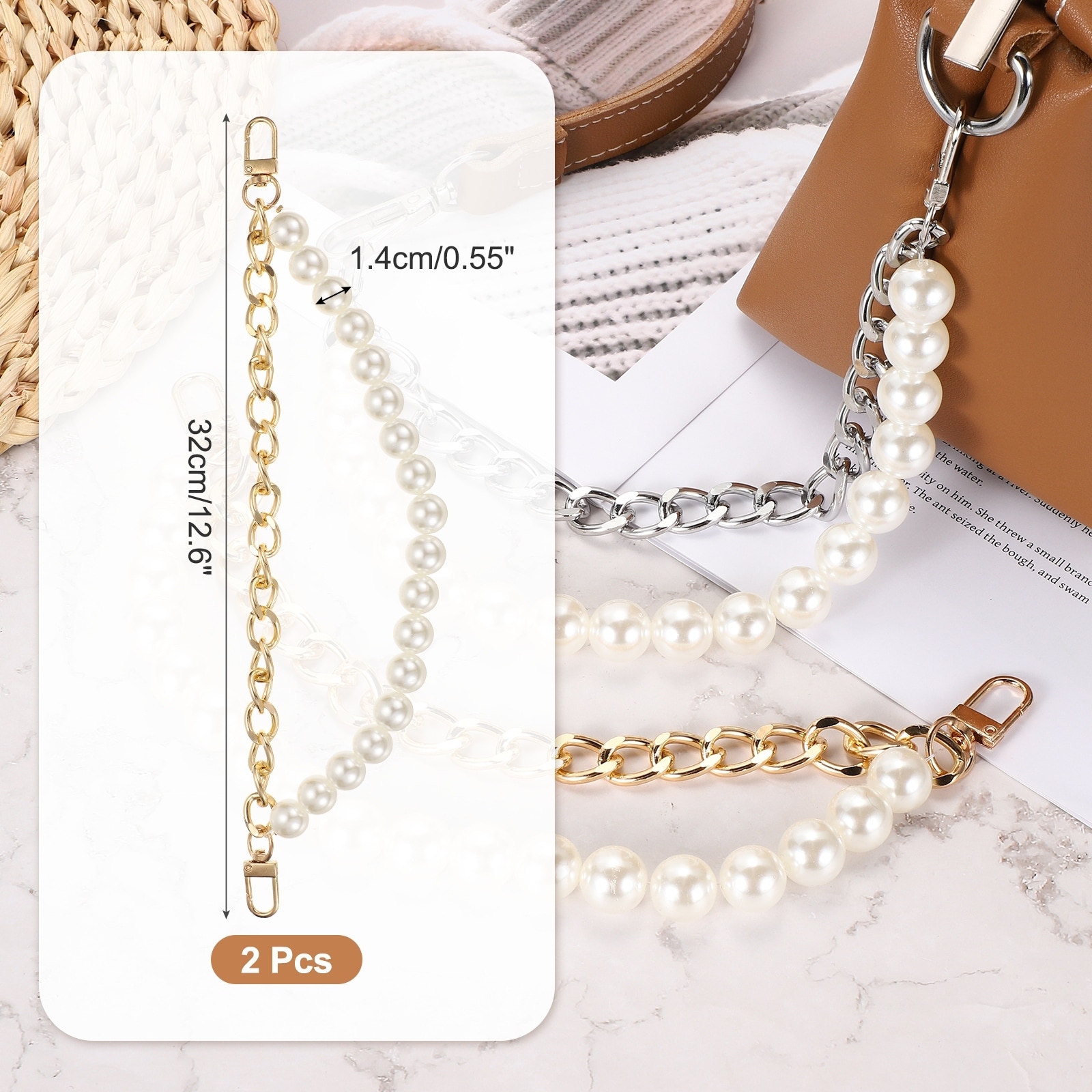 Pearl Bag Extender Chain, Purse Strap Extenders Chain Purse Making Supplies for Replacement Handbag