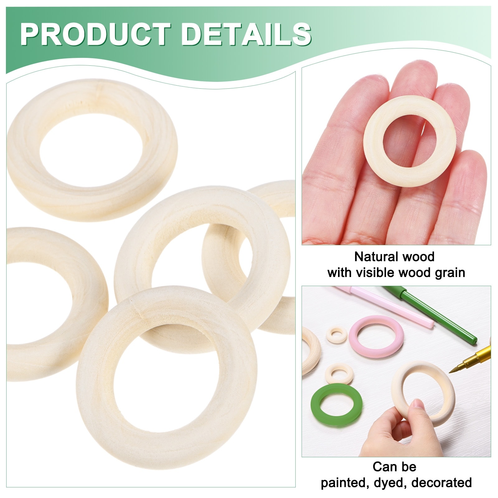 50-Pack Unfinished Wood Rings, 20 mm Natural Wooden Rings for DIY Crafts - Beige