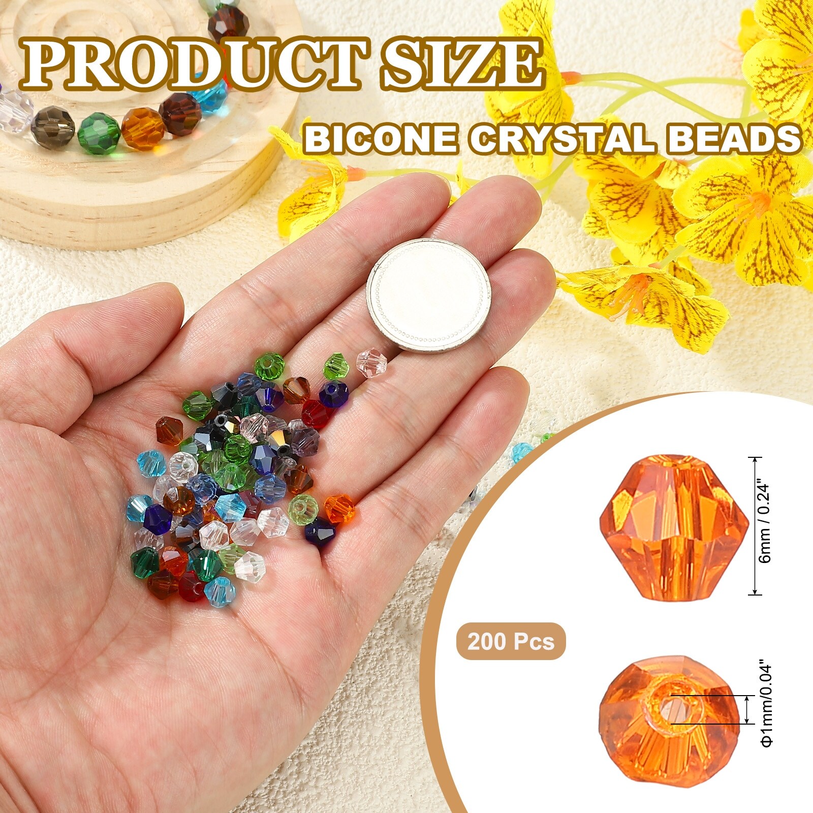 Bicone Crystal Beads, Glass Faceted Bicone Beads Loose Spacer Bead for Jewelry Making Bracelet Necklace Earrings - 6mm