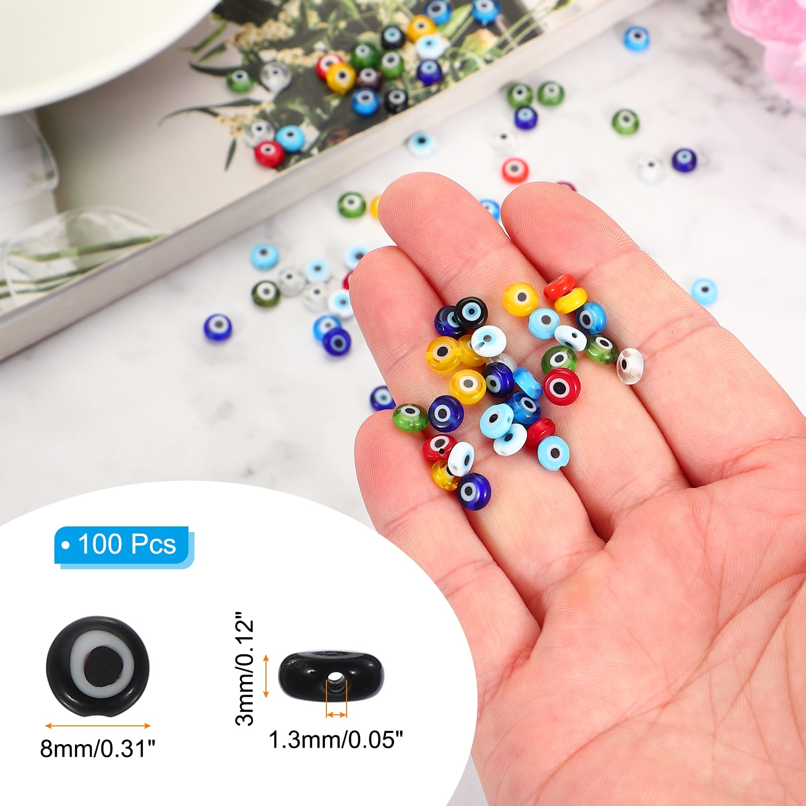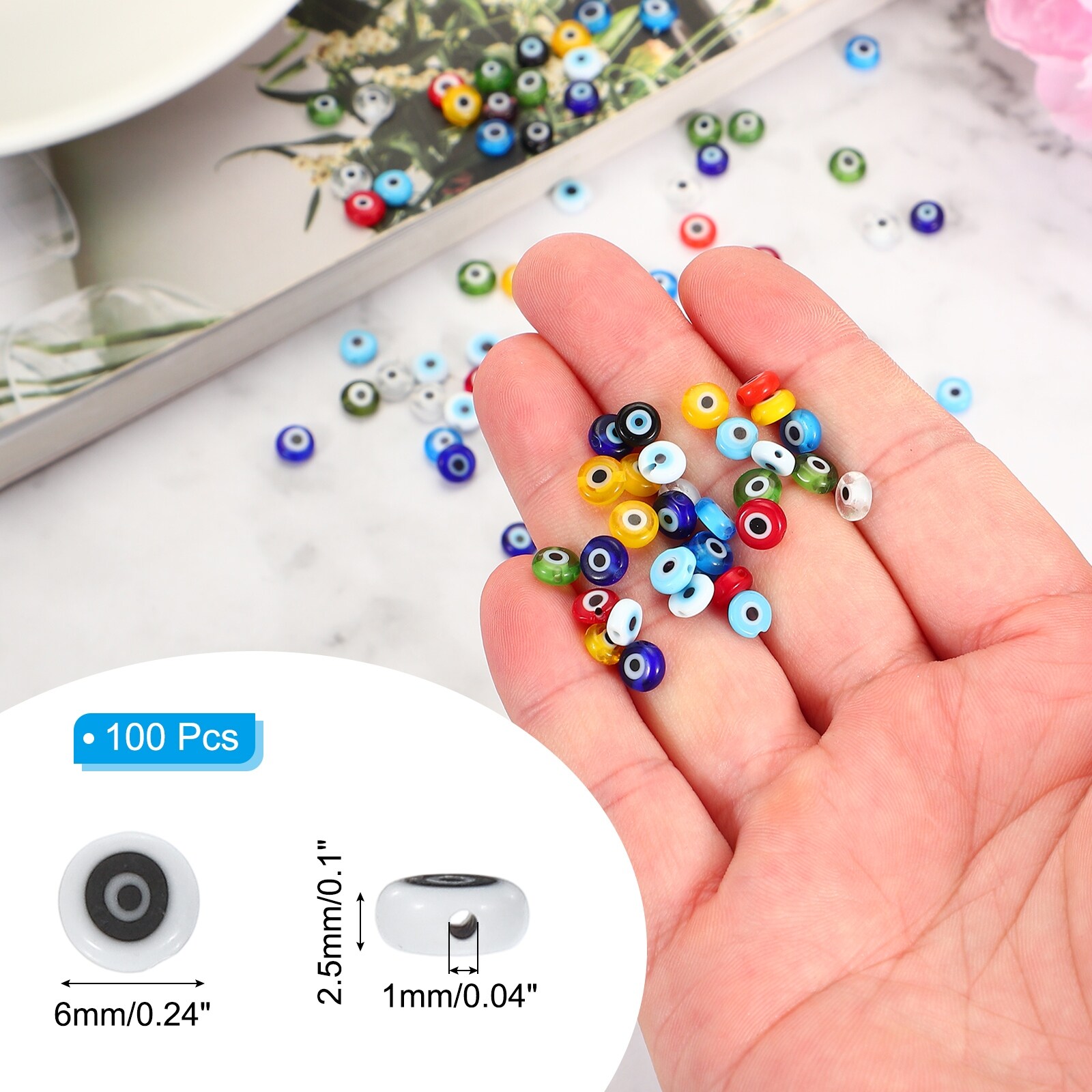 Flat Evil Eye Beads, Turkish Evil Eye Charm Round Shape