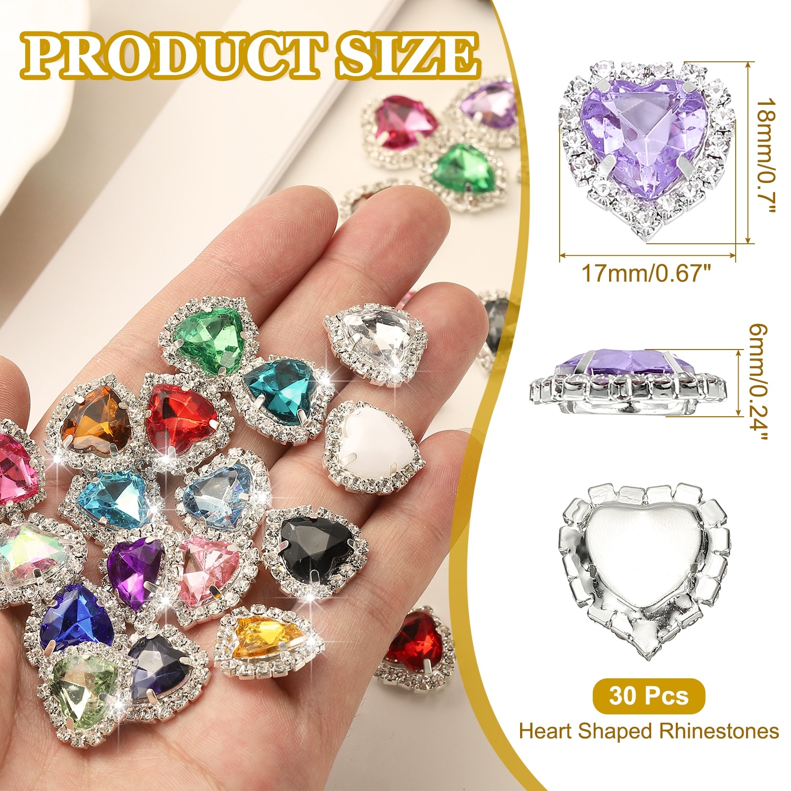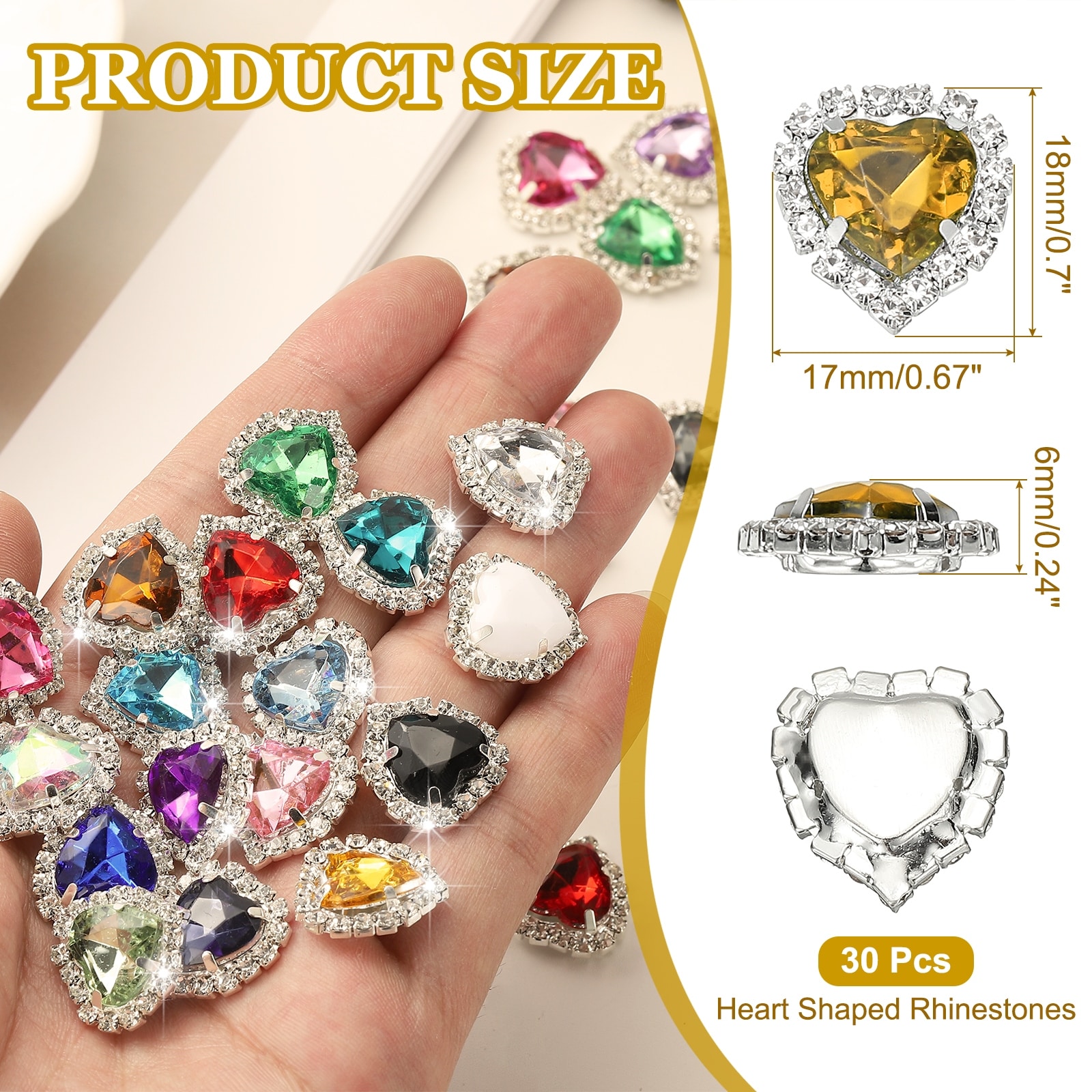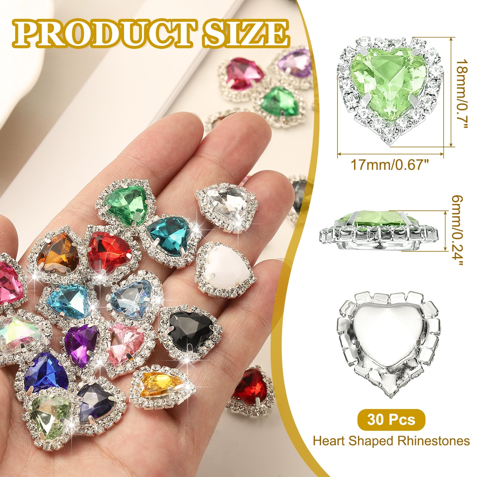 PCS Heart Rhinestones, Sew on Heart Rhinestones Buttons Crystal