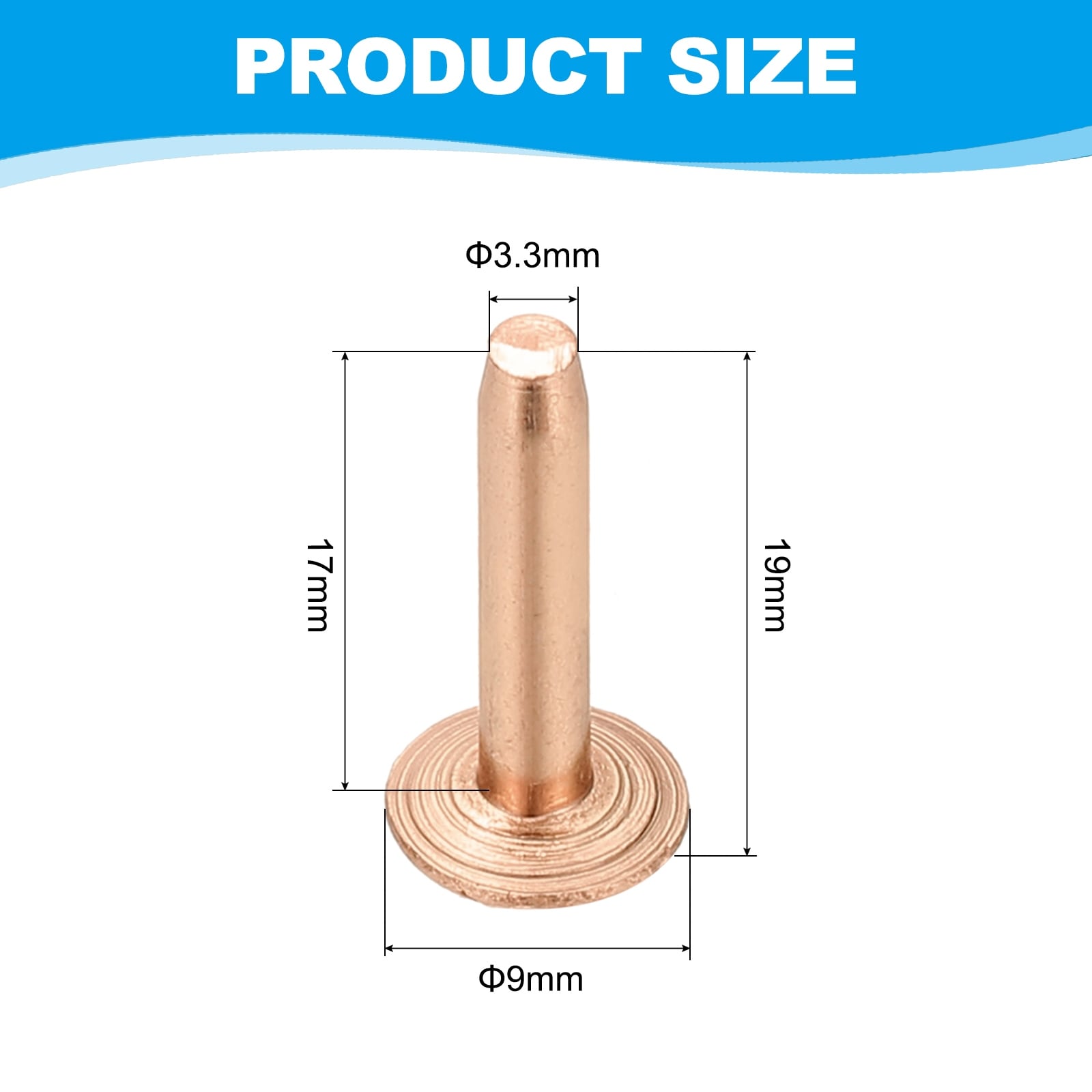 6x2.3x10mm Studs for Clothing, 24 Sets Spikes Leather Rivets, Copper