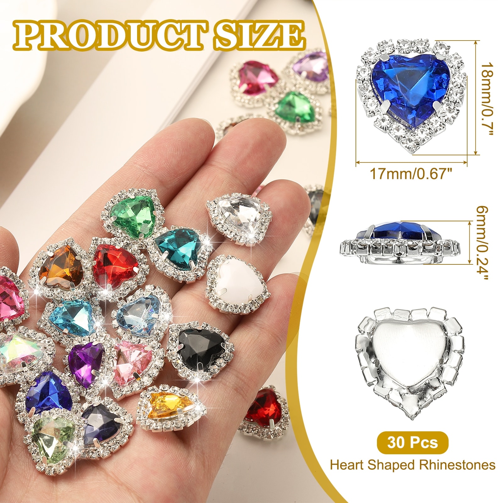 PCS Heart Rhinestones, Sew on Heart Rhinestones Buttons Crystal