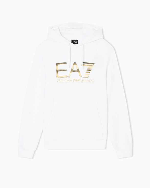 Logo Series Stretch-Cotton Hooded Sweatshirt With Oversized Logo - White - EA7 Sweats