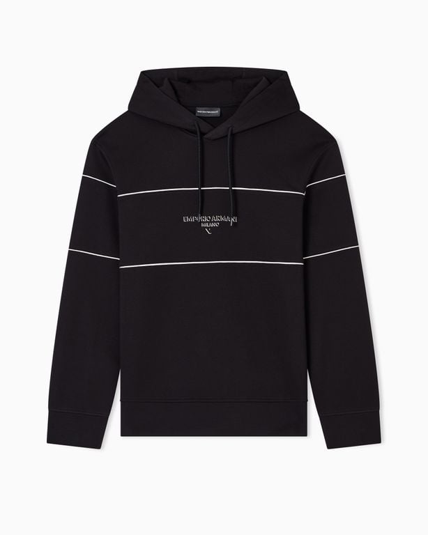 Double-Jersey Hooded Sweatshirt With 3D-Effect Logo - Black - Emporio Armani Sweats