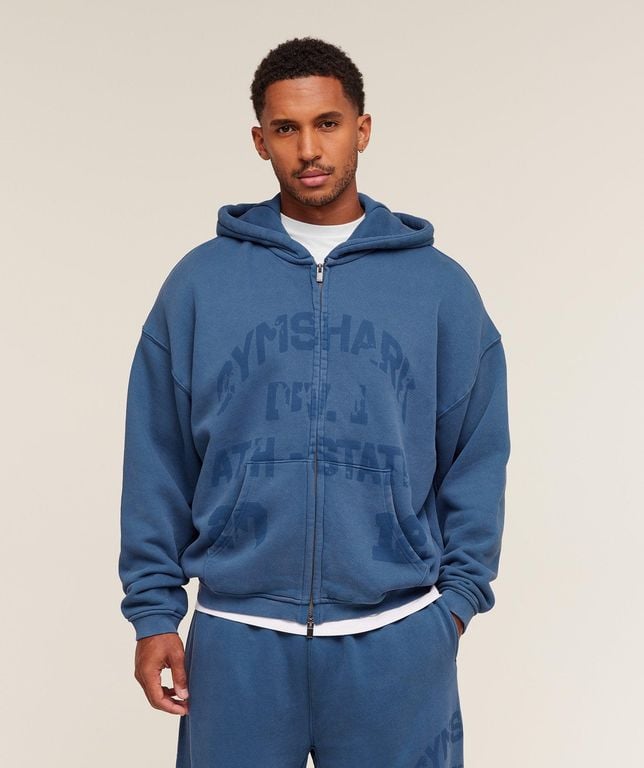 Collegiate Washed Zip Up Hoodie - Blue - GYMSHARK Sweats