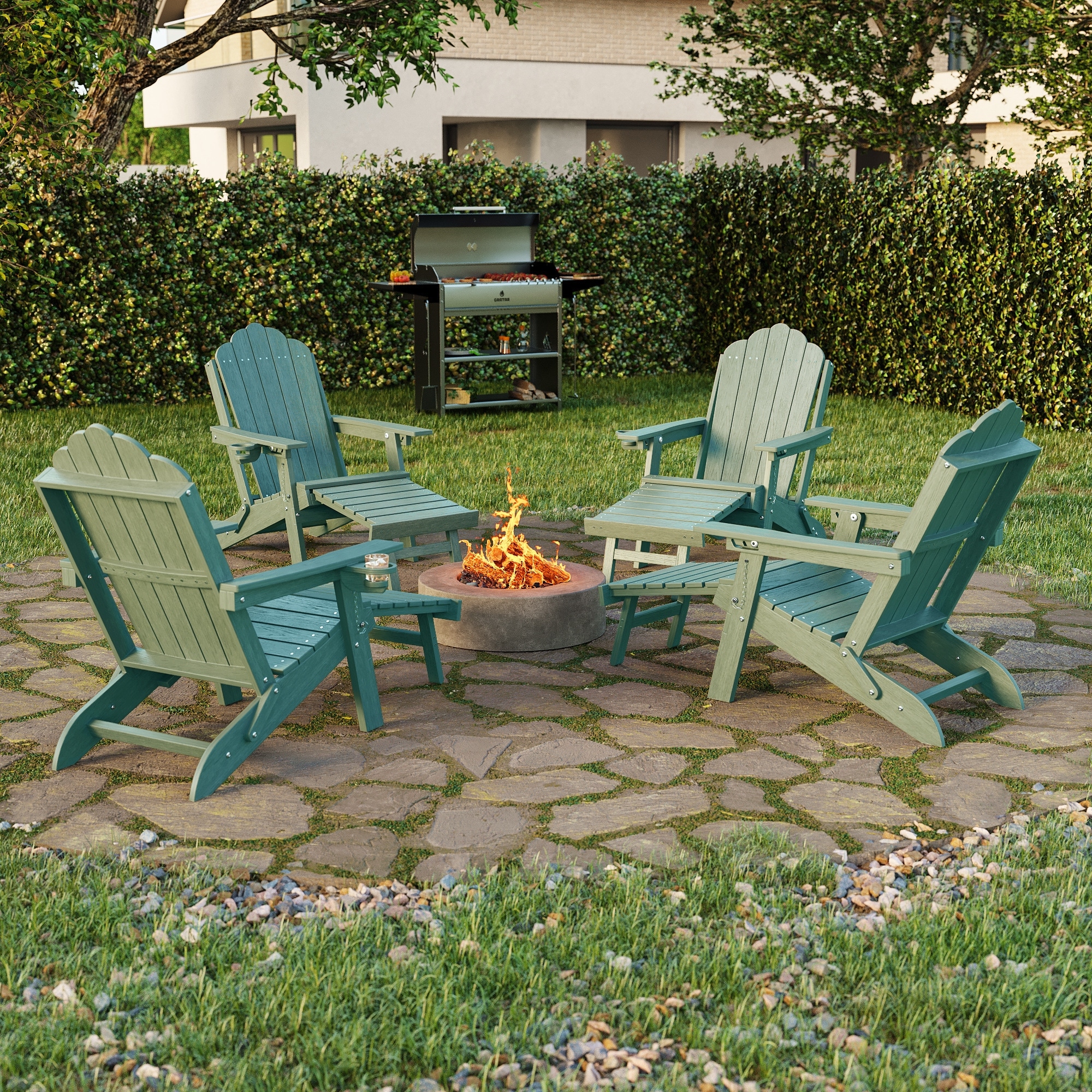 Folding HDPE Adirondack Chair with 3-Position Adjustable & Ottoman