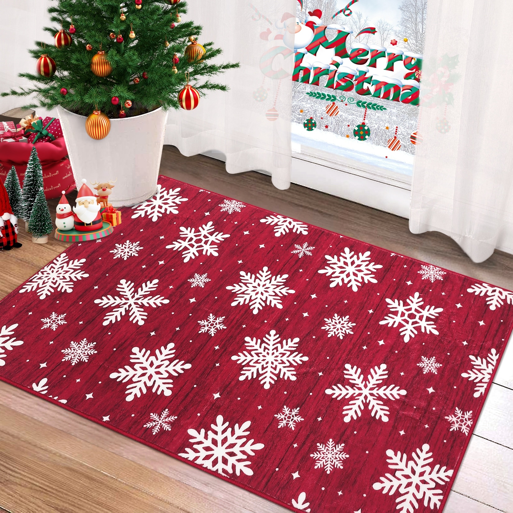 Christmas Area Rug Xmas Snowflake Machine Washable Indoor Carpet Rug