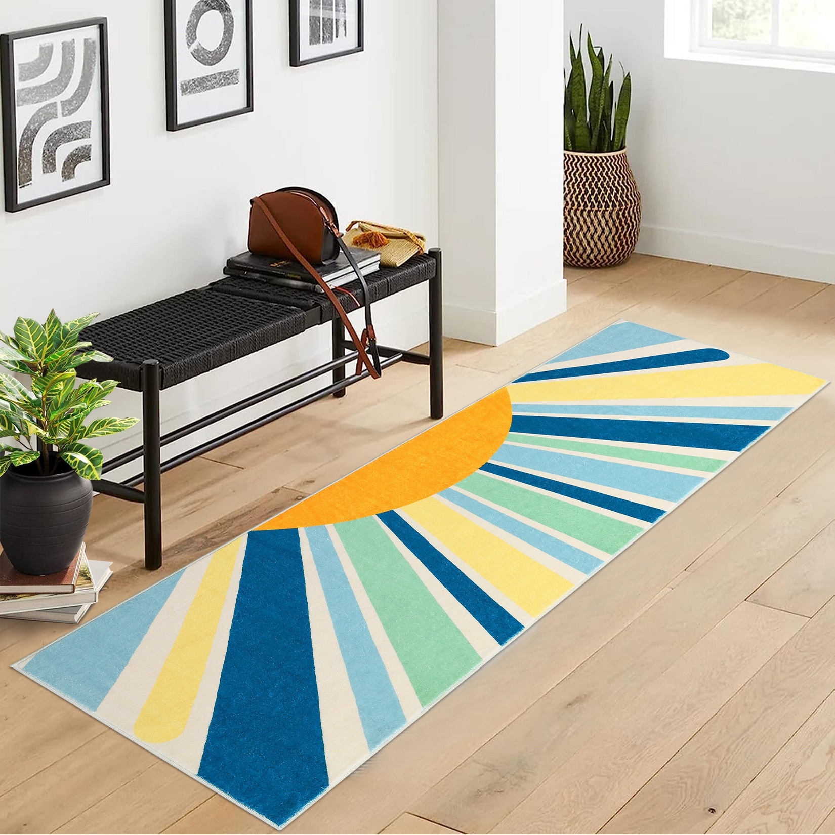 Cute Colorful Machine Washable Rugs Sunburst Area Rug Modern Non-Slip Rug