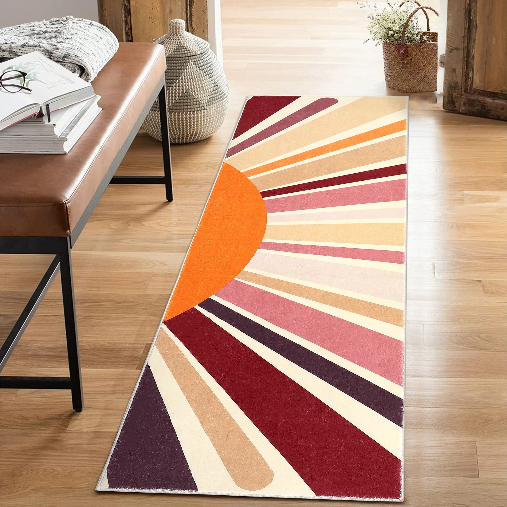 Cute Colorful Machine Washable Rugs Sunburst Area Rug Modern Non-Slip Rug
