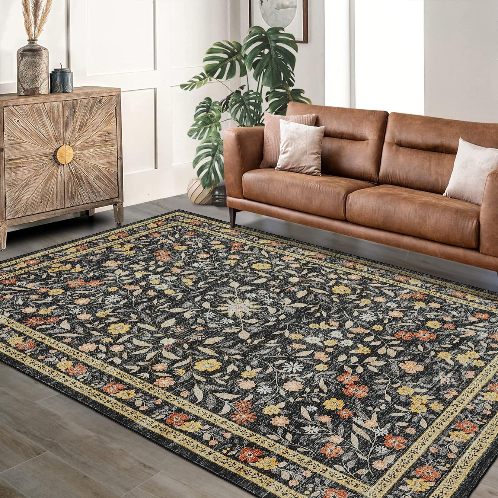 Floral Area Rugs for Living Room Washable Rug Non Slip Ultra Thin Boho Flower Indoor Floor Carpet