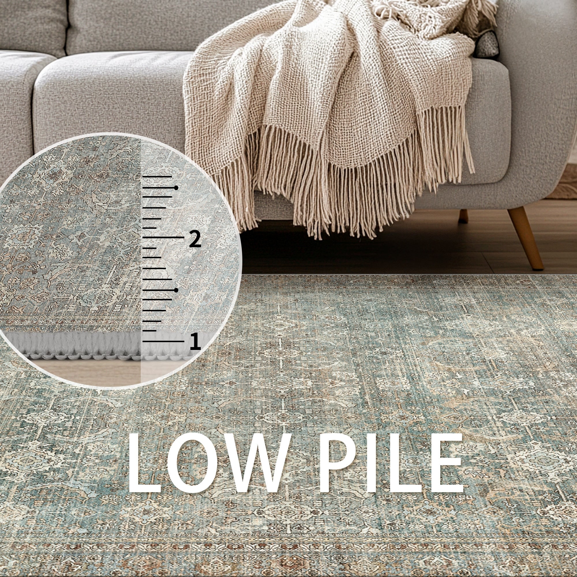Mcow Vintage Floral Low-Pile Machine Washable Non-Slip Area Rug