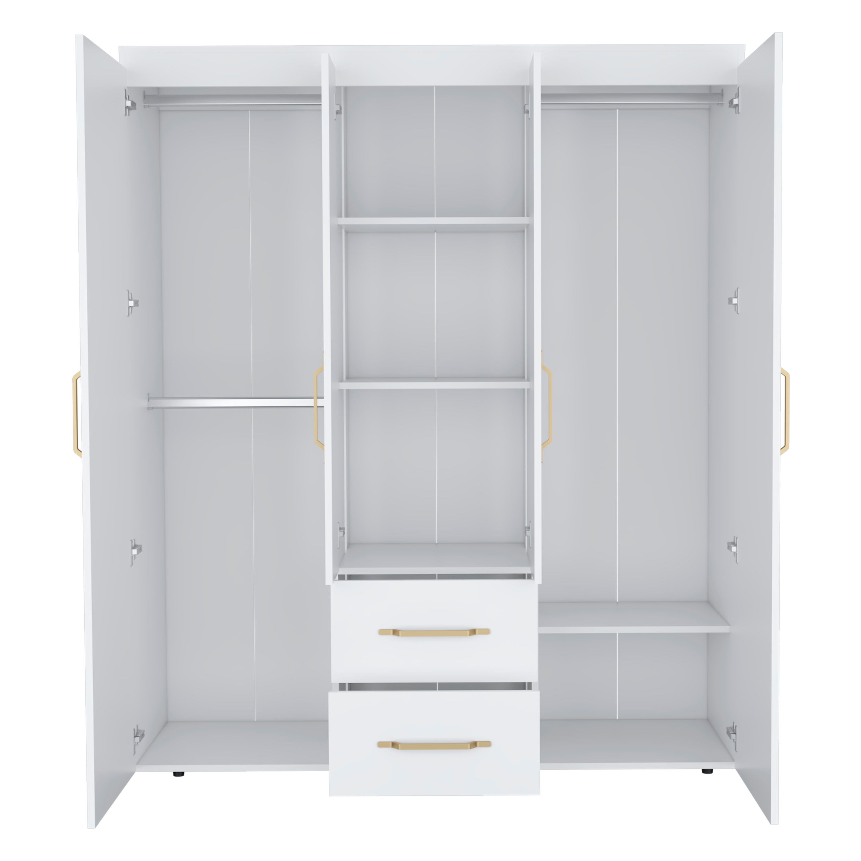 Wardrobe, Deluxe Armoire With Multiple Storage Options And Metal Accents, White