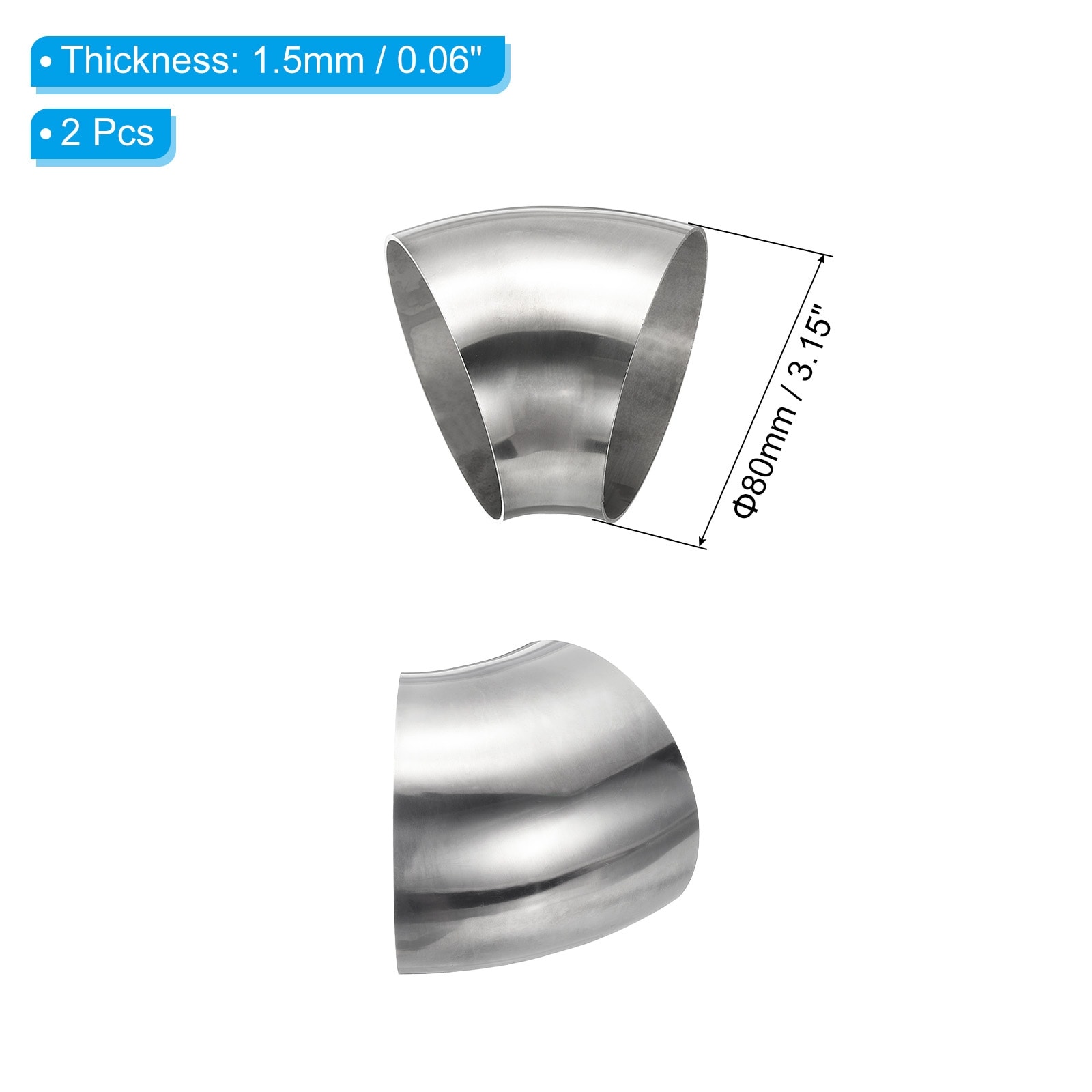 45 Degree Mandrel Bend Elbow, Steel Exhaust Elbow Exhaust Piping Connector 304 Stainless Steel for Exhaust Pipe HVAC - Silver