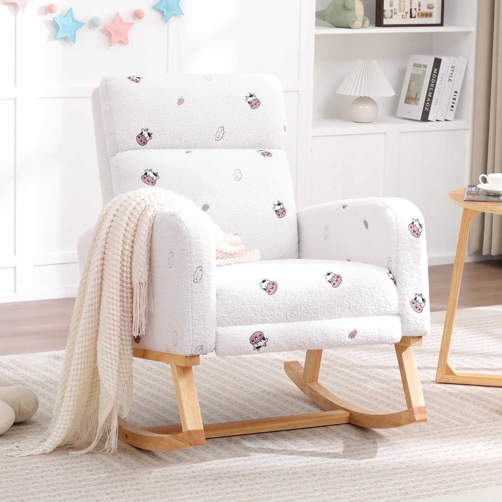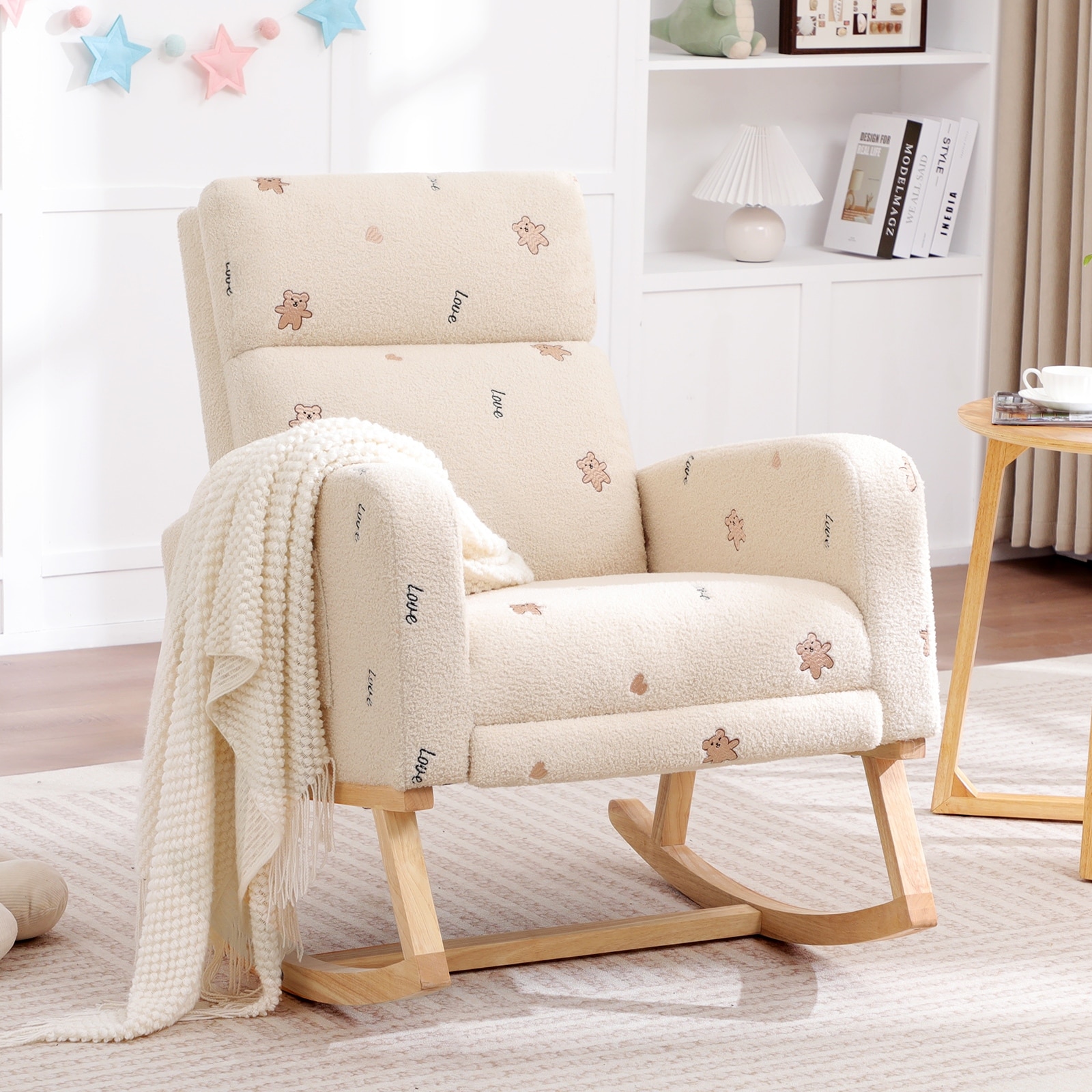 Teddy Fabric Nursery Rocking Chair With Adjustable Footrest