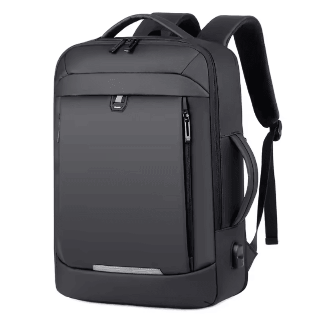 TitanPro 17 Inch Business Laptop Backpack Waterproof Expandable USB Charging Bag For Men black Leather