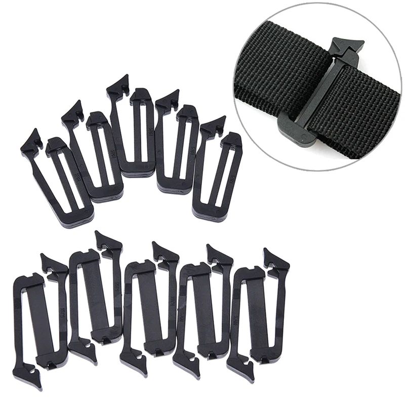 MOLLE Webbing Buckle Strap Keepers (5 Pack) Webbing End Clip & Belt End Clip For Secure Backpack Straps b Black