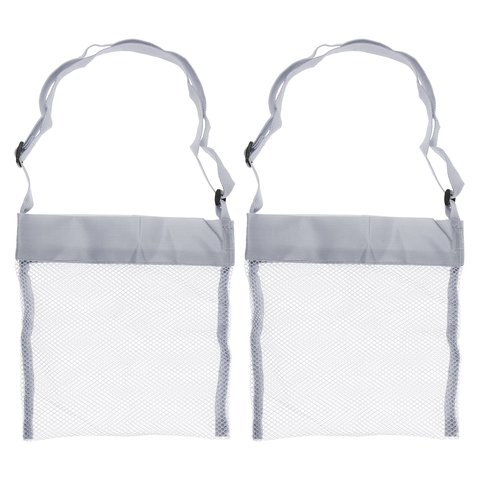 2pcs Mesh Beach Bag, Small Sand Backpack Sea Shell Tote Bags w Straps - Gray