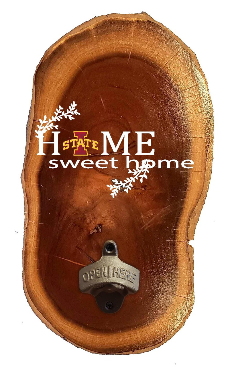 Iowa State Cyclones Home Sweet Home Wood Slab Bottle Opener