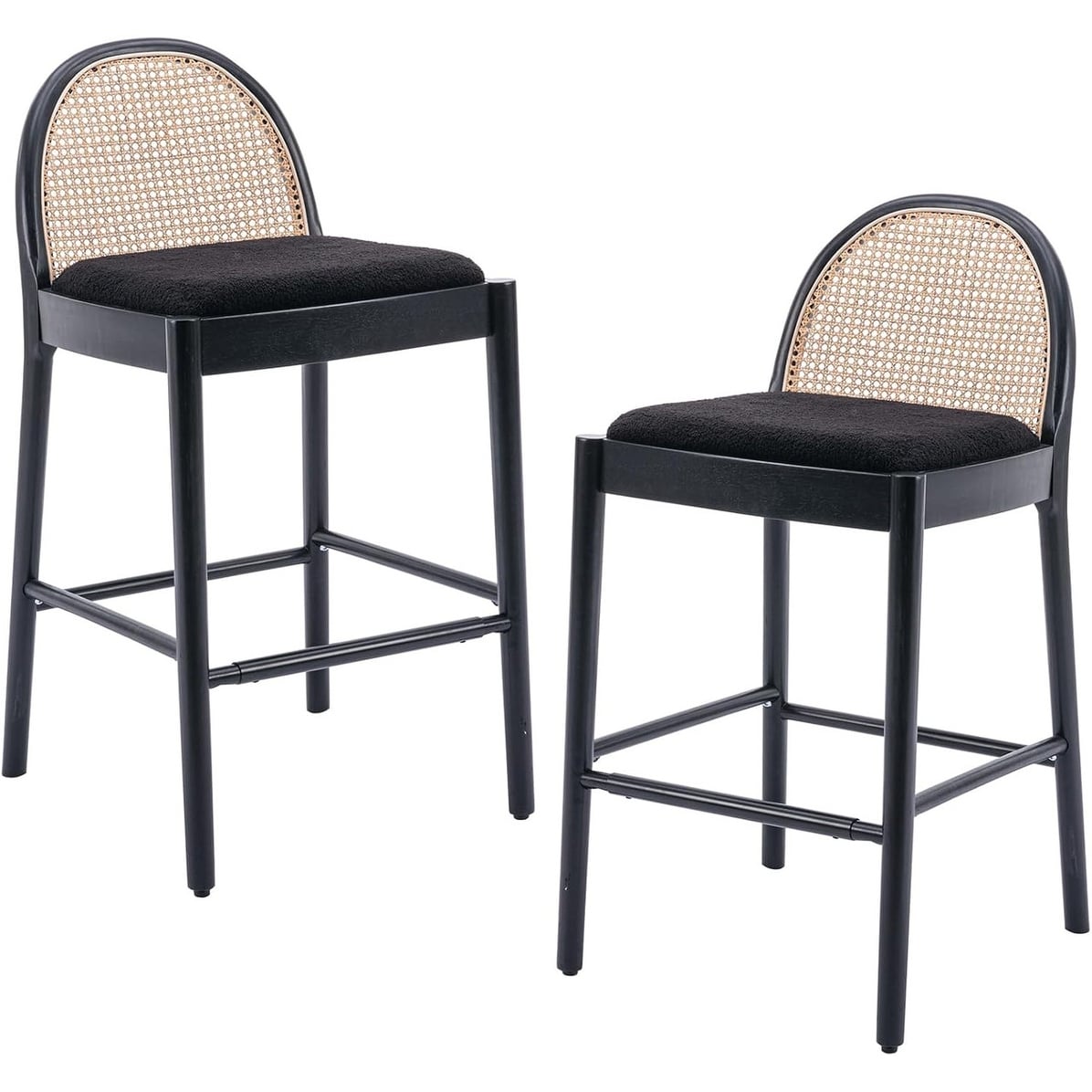 30'' Height Bar Stools with Cane Backs, Upholstered Boucle Barstools