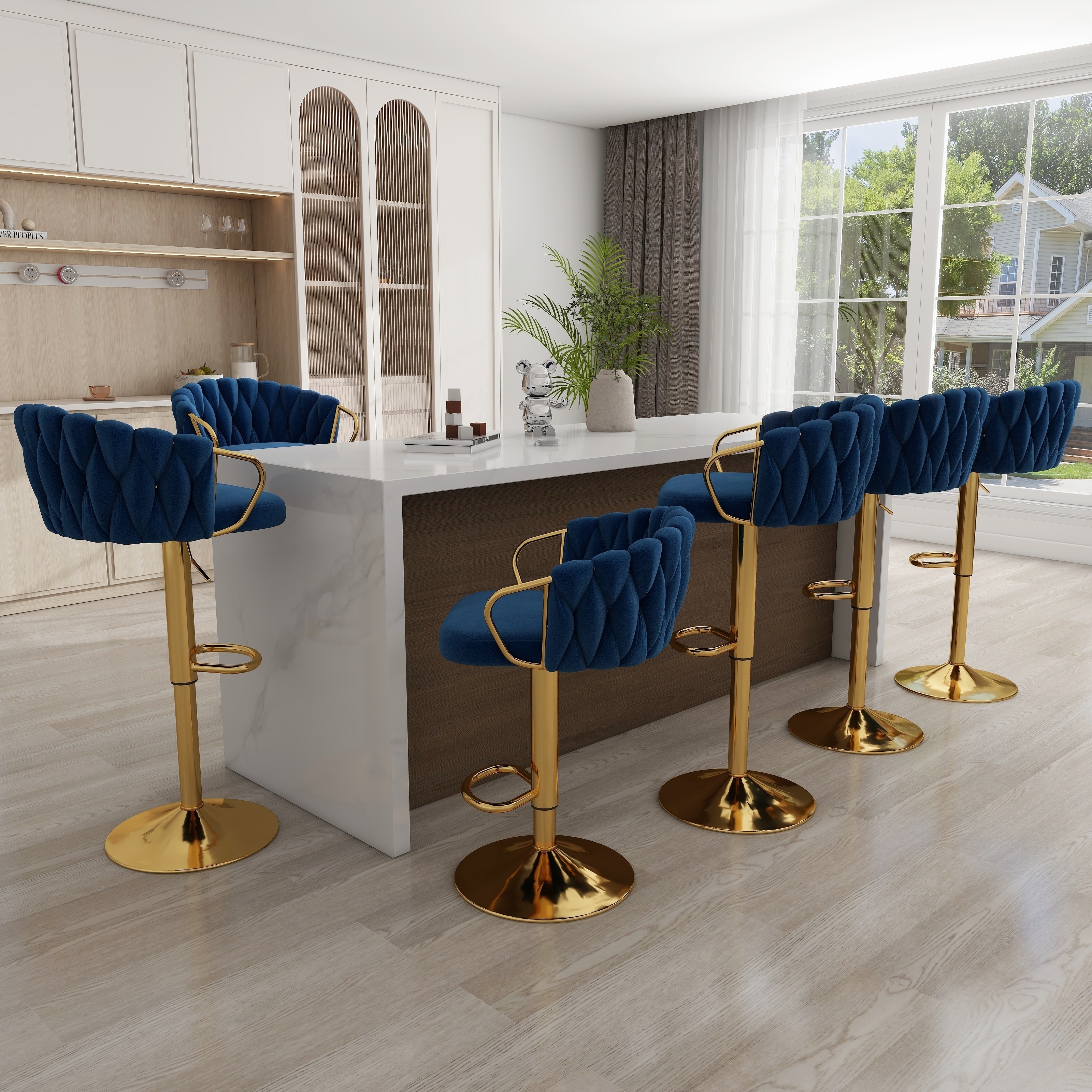Set of 4 Bar Stool Adjustable Height Swivel Velvet Woven