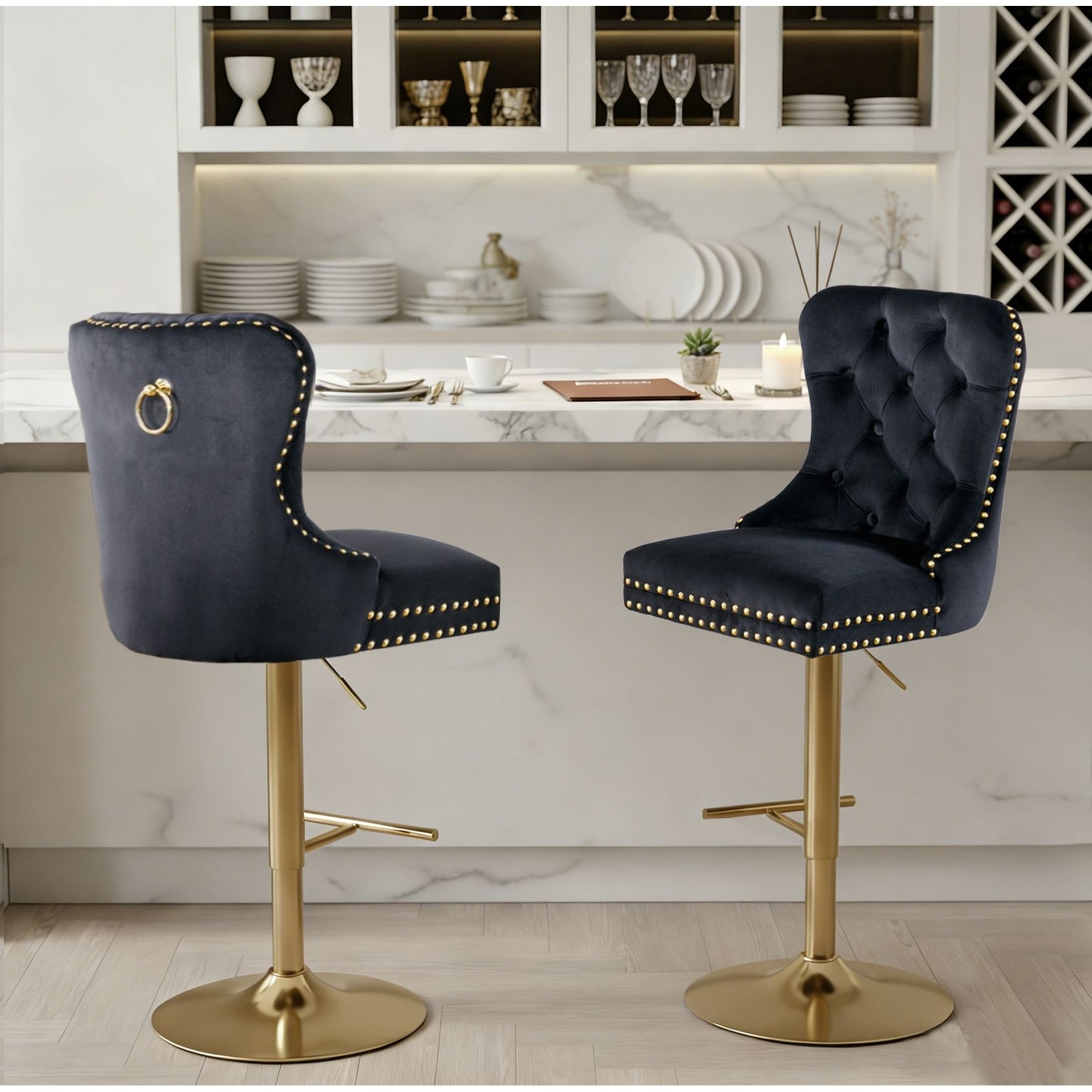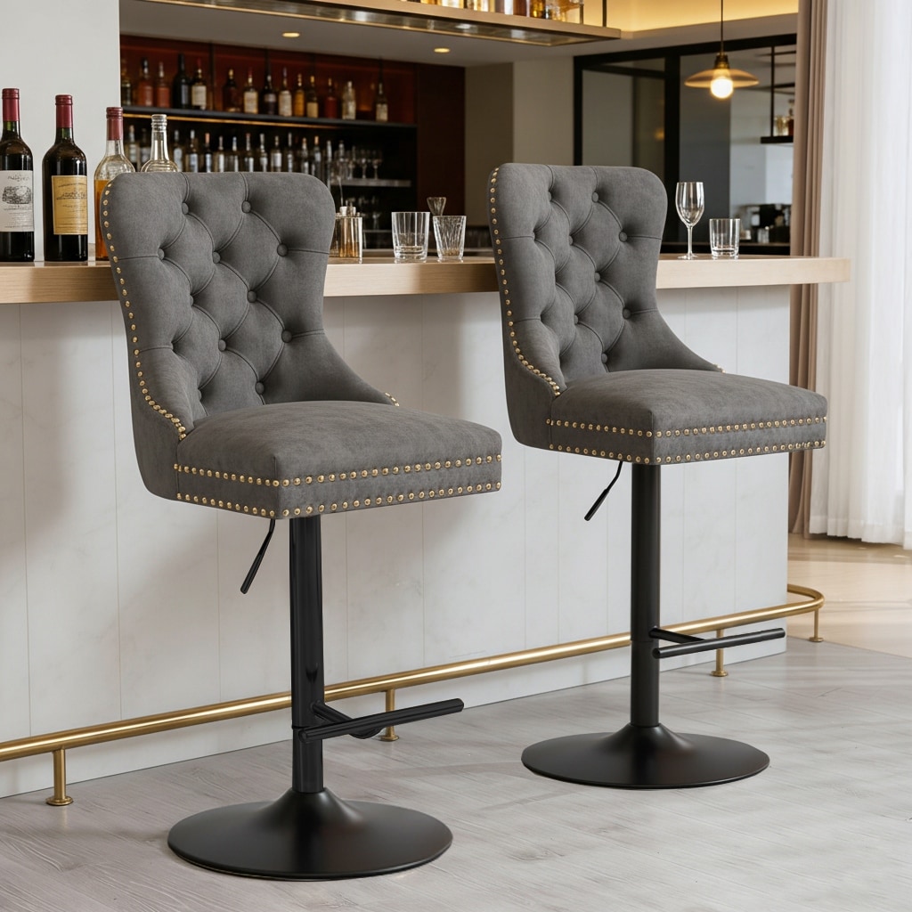 Ostweer Furniture Classic Velvet Upholstered Swivel Barstools Black Set of 2