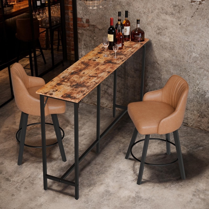 63-Inch Large Home Bar Table with Footrest, Rustic Brown